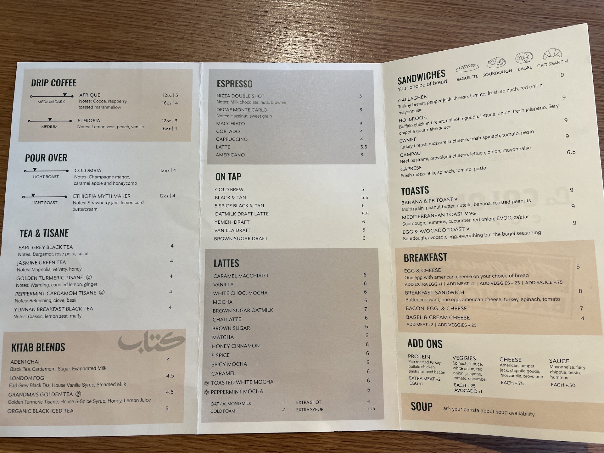 Inside the sun-drenched Midtown location, the aesthetic strikes a careful balance. Industrial elements—charcoal brick, exposed black ceilings, navy hexagonal tile—meet warm wood displays showcasing everything from self-help titles to blue-spined Quran volumes. A handwritten sign offers "Free Quran - English and Spanish," complete with a community phone line. The menu reflects this cultural bridging, with La Colombe espresso drinks priced from $3 to $6.50 sitting alongside Adeni chai, a spiced Yemeni tea that Almulaiki curated from her childhood memories. The fully halal offerings include Zingerman's pastries and made-to-order sandwiches, while house-made syrups feature a signature five-spice blend.