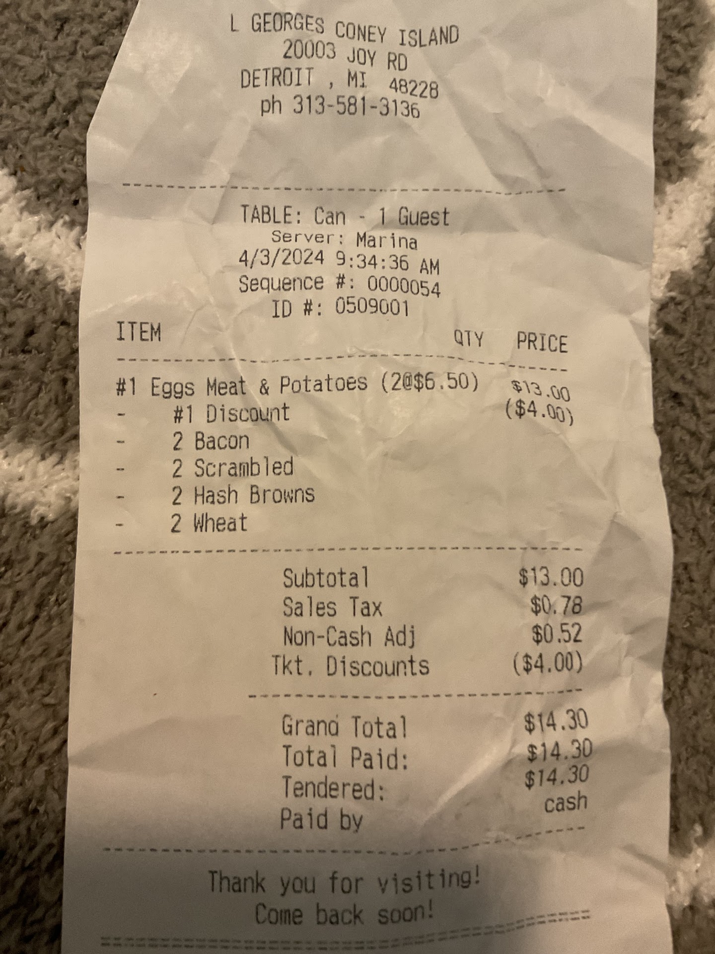 Ā Ā Ā Read moreService was okay. Food was terrible!!! I ordered a veggie Greek pita for me; hamburger and chili cheese fry for my son. My son did not touch his food after taking one bite out of the burger and a forkful of fries. The restrooms were beyond filthy. Once done with our meal, our server never came back to check on us nor to give us our payment receipt. I had to go up to the register to ask for my payment amount to pay. $16 down the drain. Worst L. Georgeās Iāve EVER ate at š¤¢š¤®
