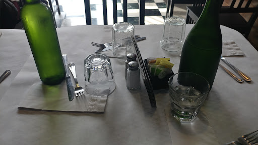 He shows us to the backroom with a table covered in backpack and coats from the staff. My guest and I watch as he clears off this table obviously not meant for service and I can't help but be embarrassed. We sit at the table for another ten to fifteen minutes and then realize that we've been forgotten. I walk into the main room and ask for water, a menu and utensils. He nods and tells me he will be with us shortly. After a few minutes he asks us to get up and then PROCEEDS TO GIVE OUR TABLE AWAY. In exchange for seats at the bar, WITHOUT TELLING US WHAT HE WAS DOING.