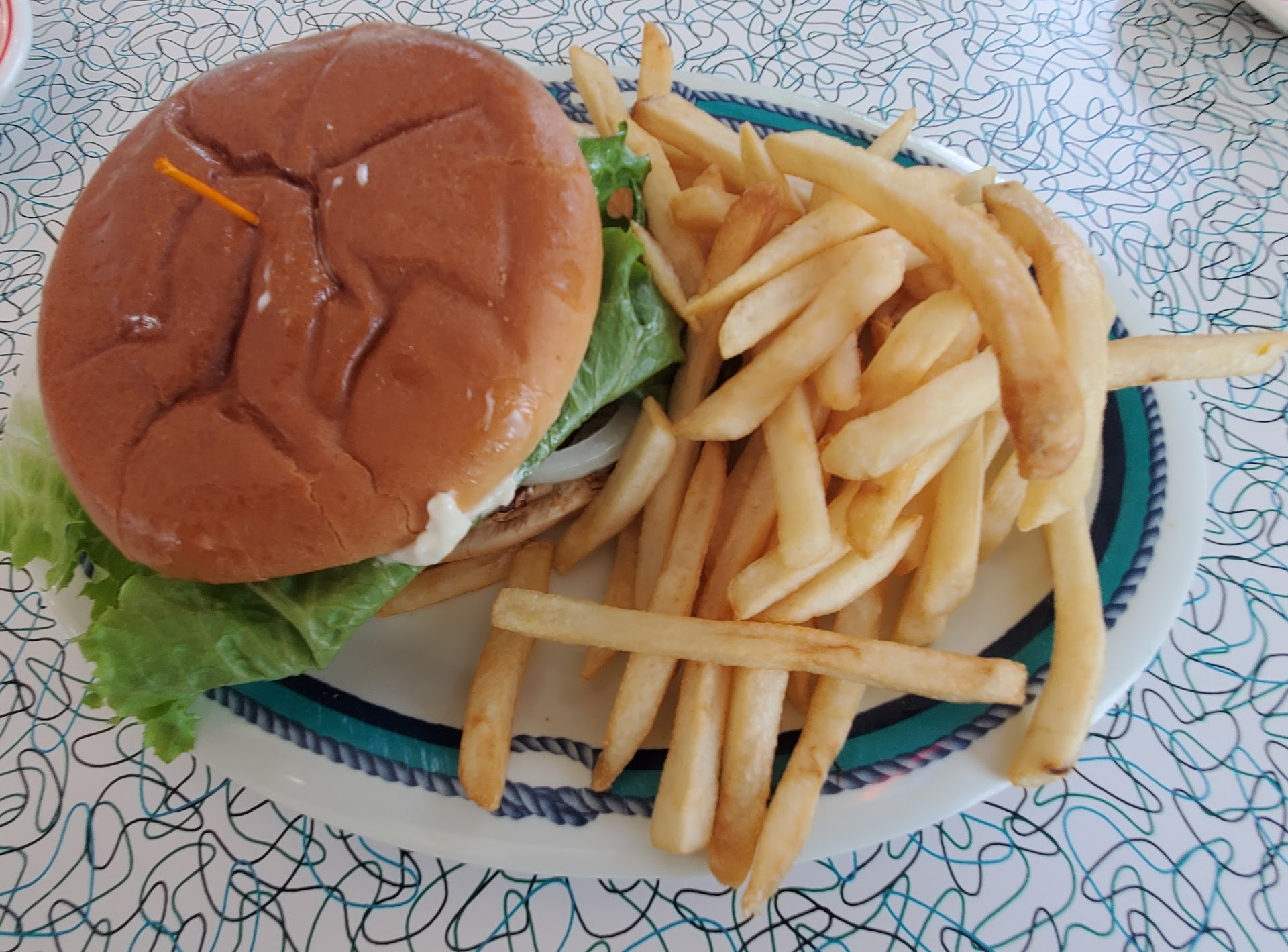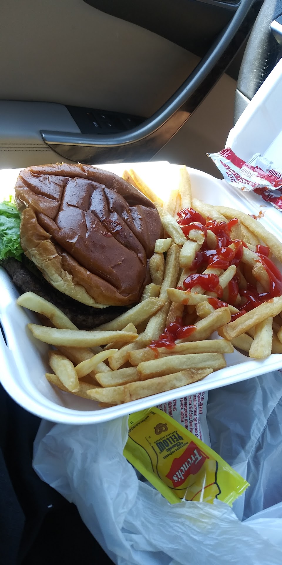 11:30 a.m. on a Tuesday and the parking lot (front & side, at least) are full but the overflow has space. All the look of a 50's style diner, right down to the music which was loud enough to hear but quiet enough to talk (i.e., perfect volume). OK, the ladies aren't wearing poodle skirts but they were a bit sexist. The server greeted me quickly but seemed a bit overwhelmed as she was the only one working the floor at the time. Understandable considering the number of diners to deal with at the time. She was pleasant despite the workload and checked in several times after my meal arrived. All the accouterments one expects at a diner right down to the creamer and jam. Menu is pretty broad, especially where sandwiches are concerned. Fish sandwiches, gyros, burgers, hot dogs (Coney, plain, etc.), melts. A fairly substantial breakfast section and salads & soups round it out well. I went with the Classic burger & fries. The burger is huge & the amount of fries is substantial. I ordered the burger medium but it came medium-well. It wasn't juicy like it should've been but was flavorful still. Next time I'll sit at the counter (missed that on the way in). There's a drive-thru in case you want to "grab and go", too. An FYI: if you pay by plastic, you will pay the credit card charge. I don't mind, but I was unaware. I'd...