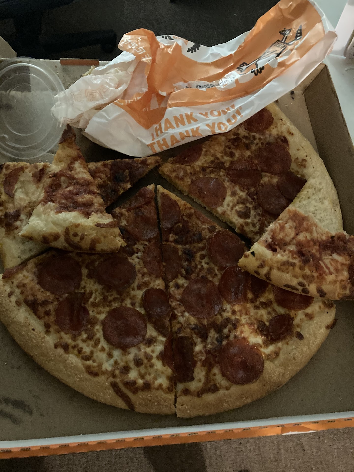 $16 Batman combo pizza order was supposed to come with sauce for the Batman calzone and the crazy bread. They claim the Dasher ran out before they could give them the sauce but at what point is the restaurant held accountable and responsible for making sure that the order is complete with all condiments silverware napkins etc? I also got no napkins just the pizza the bread and a lukewarm mountain dew 😒 they tell me there's no way to credit it but that I could come up to the store and pick up the sauce myself. I had a delivery order for a reason. I'm a person who's disabled so I can't drive that was the whole purpose of me having a delivery set up. Then not to mention the calzone pizza looks like that just threw it in the box and shuke it on one side. I get that it's a pizza joint but presentation is everything. For $16, I definitely expected better from a chain I order from often all around the city. Won't order from this location ever again. I'll stick to Highland Park or Davison before ordering...