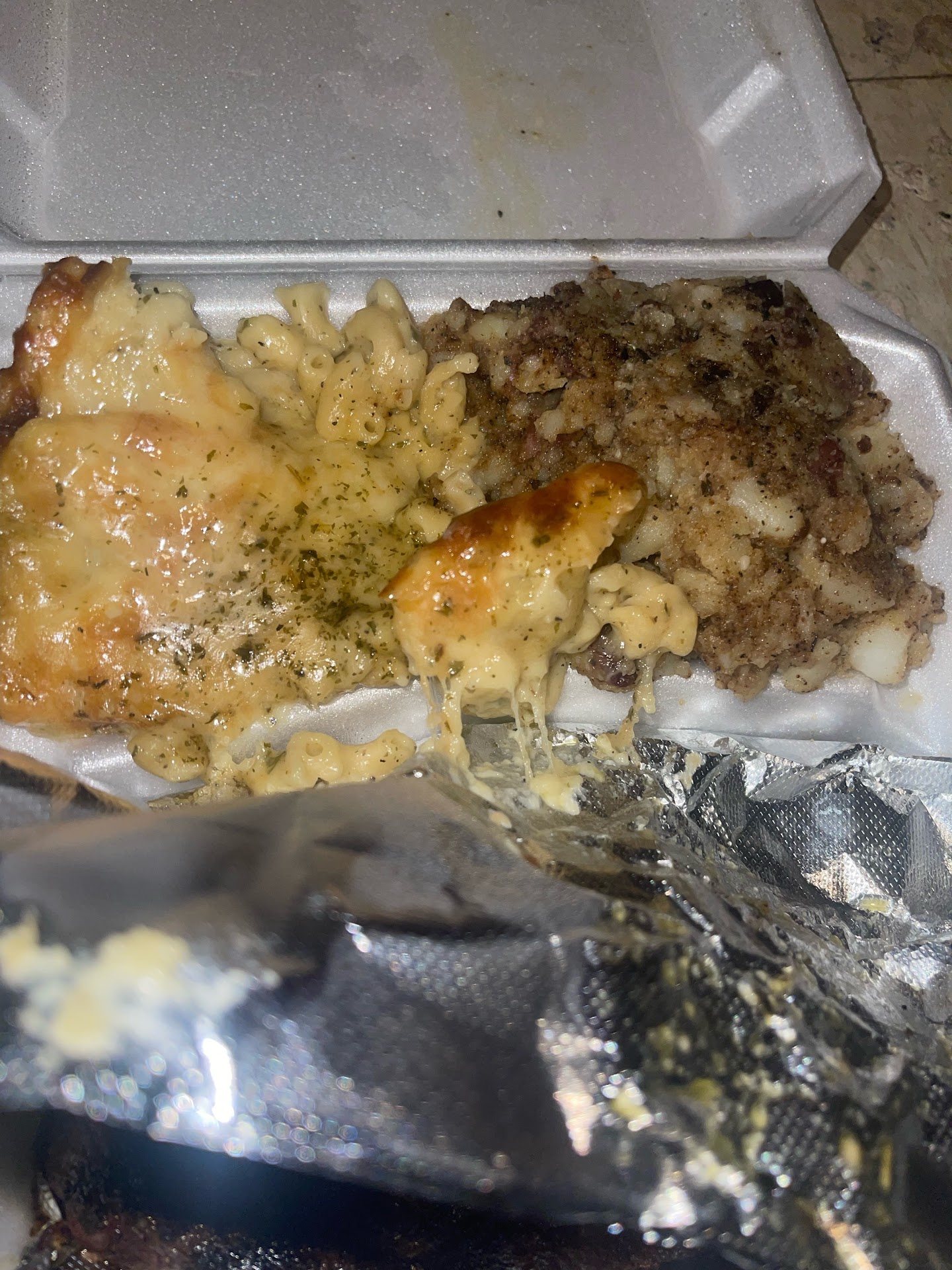 The Ribeye was tender! I can say that! The order notes were missed as my steak was definitely cooked well and not medium as I requested. I also requested a charred crust which can be seen on the IG but I didnât really get that. The taste was okay, it didnât gave that flame broiler taste I thought it would have. The garlic butter was ok, again cause of the over cook and no char it didnât taste the way I wanted it to. Itâs better than a Coney Island steak for sure. The smothered potatoes arenât what I expected but boy were they good! The Mac and cheese is decent when itâs hot, once it cools down you can kinda taste one of the cheeses is off or just some kinda little after taste? Idk I couldnât figure it out! Iâm gonna order again to try something else to determine if itâs a go or not.