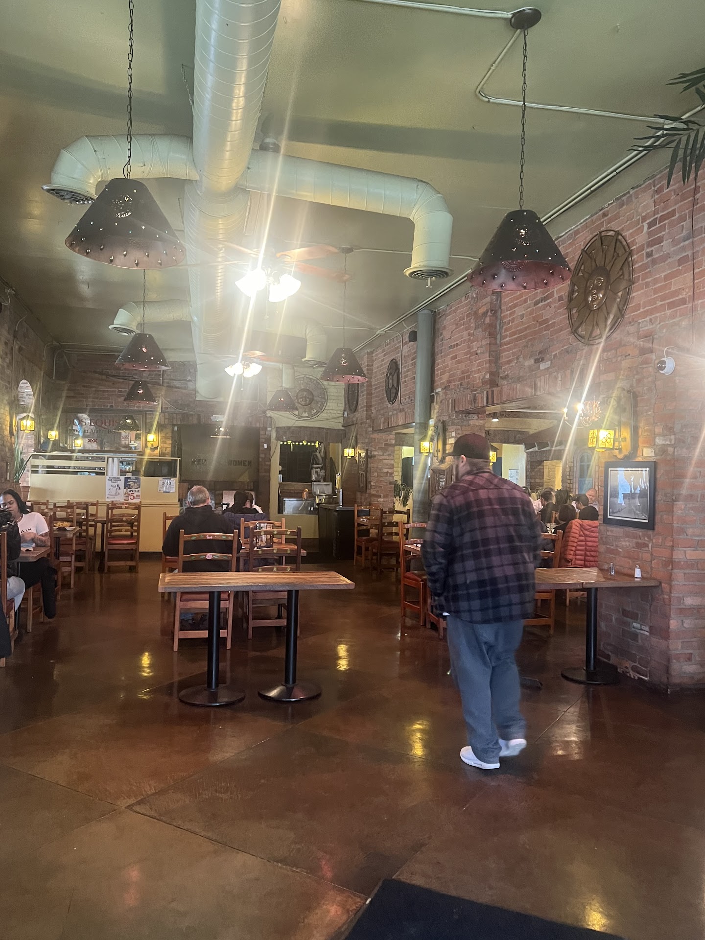 Despite being seated first, we watched him take orders from two other tables before even getting back to us. He repeatedly forgot my drink order (no ice), which I reminded him of more than once. He stopped checking on our table entirely, and even sat down to chat with another customer while we were clearly waiting for boxes and our checks. At this point, we were pushing our time limit — we needed to leave by 2 PM — and still hadn’t been properly attended to.