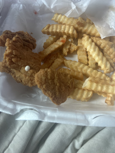 Ā Ā Ā Read moreI ordered 3pcs whole wings 5pcs shrimp with fries & 3 tenders with fries (lunch special) Everything was HORRIBLE besides the 5 pcs shrimp! Not to mention they got my order wrong and didnāt want to compensate me in any way! I will NOT recommend eating her chicken literally didnāt taste like anything not even lemon pepper after I asked for EXTRAAA!! Chicken tenders look like school lunch tenders FRIED HARD after I said lightly fried they did whatever they wanted to do with my order & they literally just opened at 11am itās 11:43 as u can see all 3 wings are there a little bit on to try it but yuck never again ! Shrimp was gone because thatās the only thing was good . Tender were too hard besides 1 so he ate one and this were the other two THEY NEED TO BE CLOSED DOWN oh & kool...