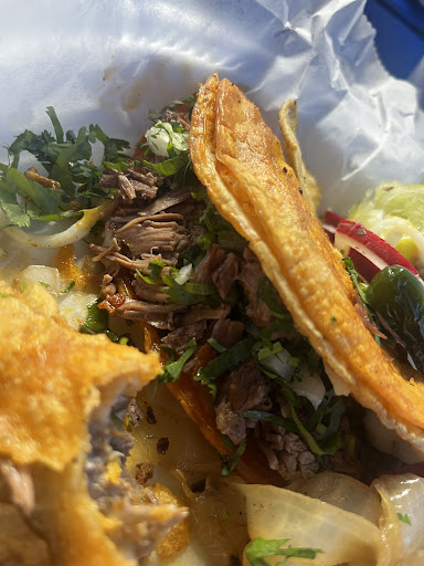 Was out driving today and came across this truck so we decided to give it a try. The outside seating are was clean and the lady taking the order was friendly but that’s about the only good thing I have to say an out the place. The Birria meat had absolutely no taste. The ground beef on the nachos was extremely dry. Like it had been done and reheated for days.. some pieces of the beef are very dark like burnt looking. Overall just not...