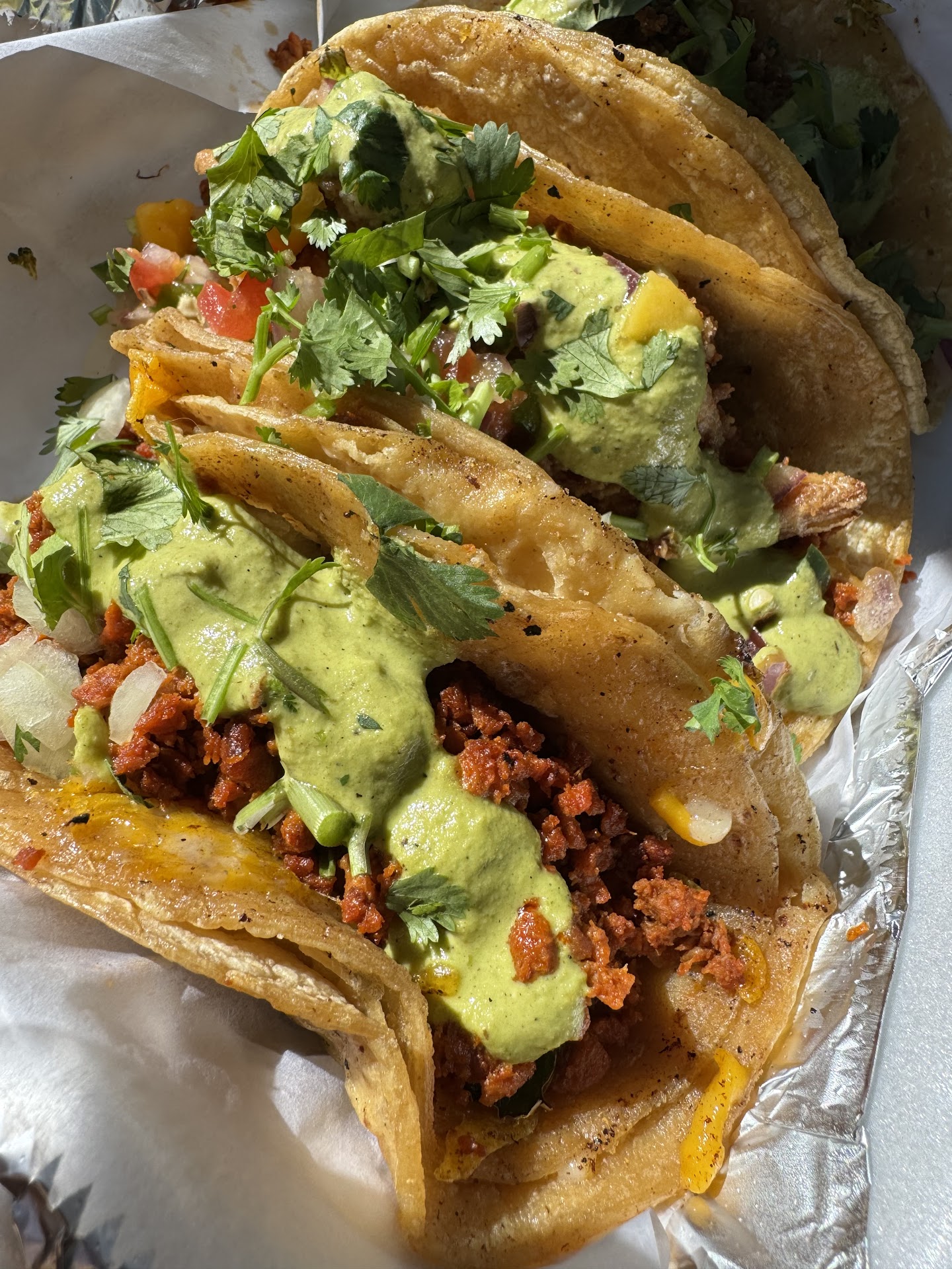Ā Ā Ā Read moreWell, what can I say other than delicious so far ! As I've begun a vegan dietary journey for the 3rd time in 10 years (51 yrs of age) , a tip of the old hat goes to Rocky and all the vegan culinary sorts that have gone in the lab, to create foods that some feel we had to give up, like tacos. her ability to replicate, even amplify the tastes, with healthier ingredients than land animals is super neat dude ! Only been here once and tried a 3 Taco variety plate. was left very satisfied with quality/tastes and portions weren't skimpy. Came back on a Friday to get down on the "fish' tacos, and left dismayed as a huge order from an office boxed me out of my attempt to try them, yet, I had to be happy that Rocky is getting that type of notoriety and wish her even more popularity in her craft. I'll get my hands on a few of those another day as absence makes the stomach growl louder ! Tuesday is right around the corner and so is her food truck, from my...