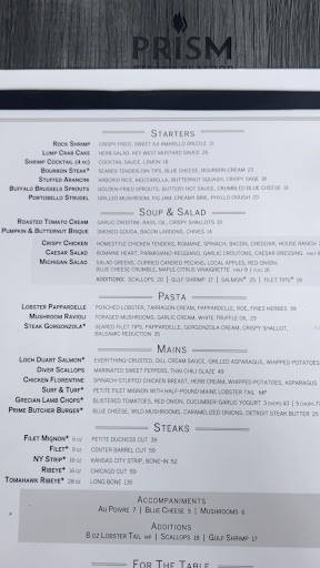 Read moreIf I could give 6 stars I would. We almost cancelled our reservations based on some of the reviews for Prism lately. I am sure glad we did not! The food was amazing, we had butternut squash soup, mushroom soup, short ribs (make sure to get the zip sauce!) and the brussels sprout. Not only was the food amazing, but our service was better than we could have ever desired. Our servers name was Lisa and she treated us so great, and was attentive like we were her only table in the place. She was funny, thoughtful, made great suggestions, and went above and beyond on everything. When we told her that my wife was pregnant so she wouldn't be drinking alcohol she was so excited for us and said she was going to make a little "Juicy Juice" for my wife. The Juicy Juice was a great mocktail. I can't say enough about how special we felt because of Lisa's great customer service. For my personal business I have taken customer service courses from Disney and Ritz Carlton and Lisa checked all the boxes on how to deliver outstanding customer service. We will come back here our next night out, and you should make this your place to eat on your next...