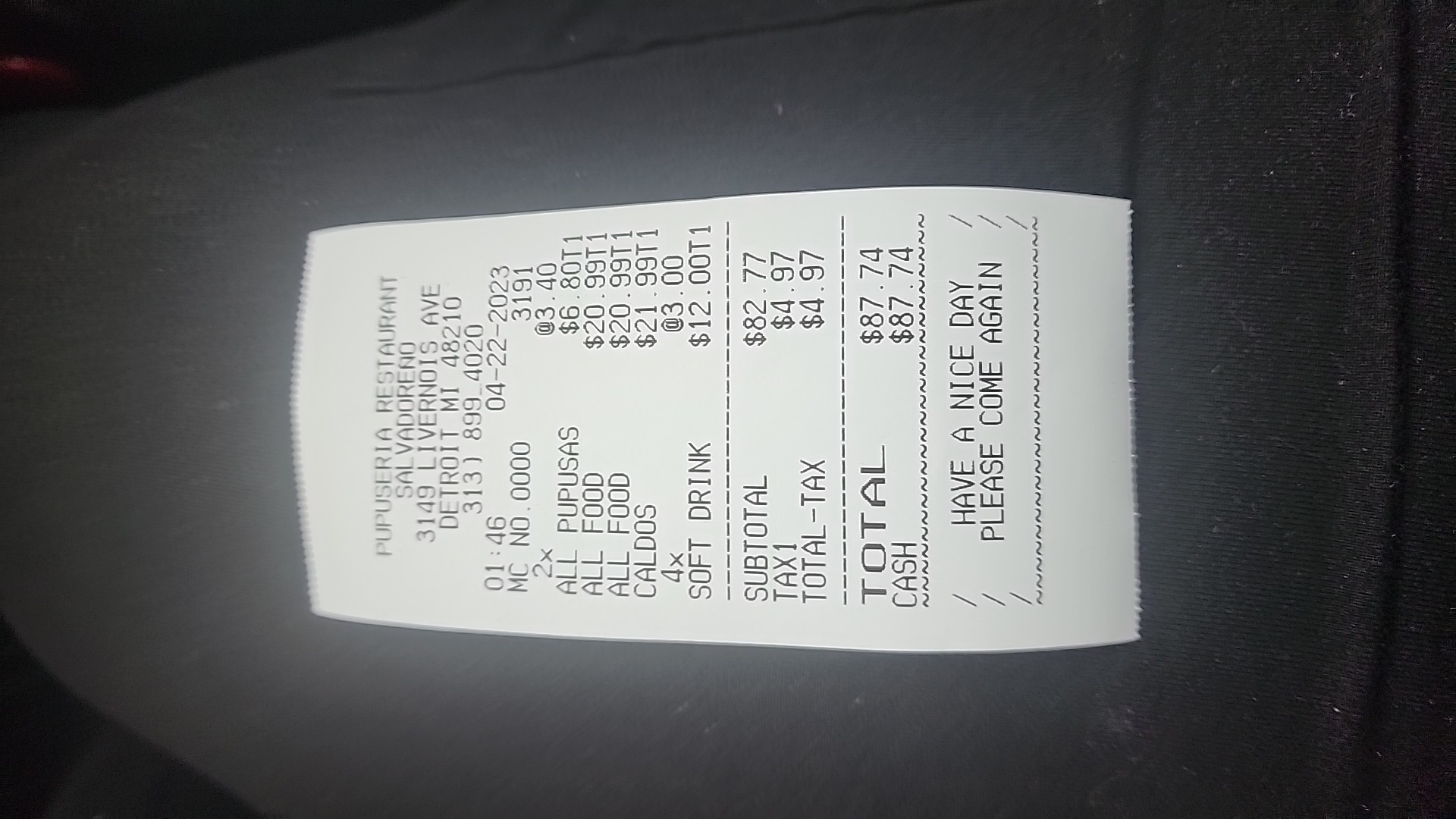 I'm from Toronto and decided to have lunch here with my family before heading back to Canada. The vibe felt off from the moment we walked in. I noticed that the menu didn't have prices labeled, but we ordered what we were craving regardless. I had always heard that Pupusas are better in the U.S and everyone was right. We ordered different kinds and all were delicious. My son really loved the shrimp Pupusas. Decent size and very filling. The horchata was okay. I placed a take out order for pan con pollo and tamales de elote, but was told the pan con pollo was sold out. Overall, the food great. Service not so much. The girl serving us was very serious and not so welcoming. I felt I had to rush my meal and get out, because I wasn't comfortable. When we left I asked my family how they felt and they all said...