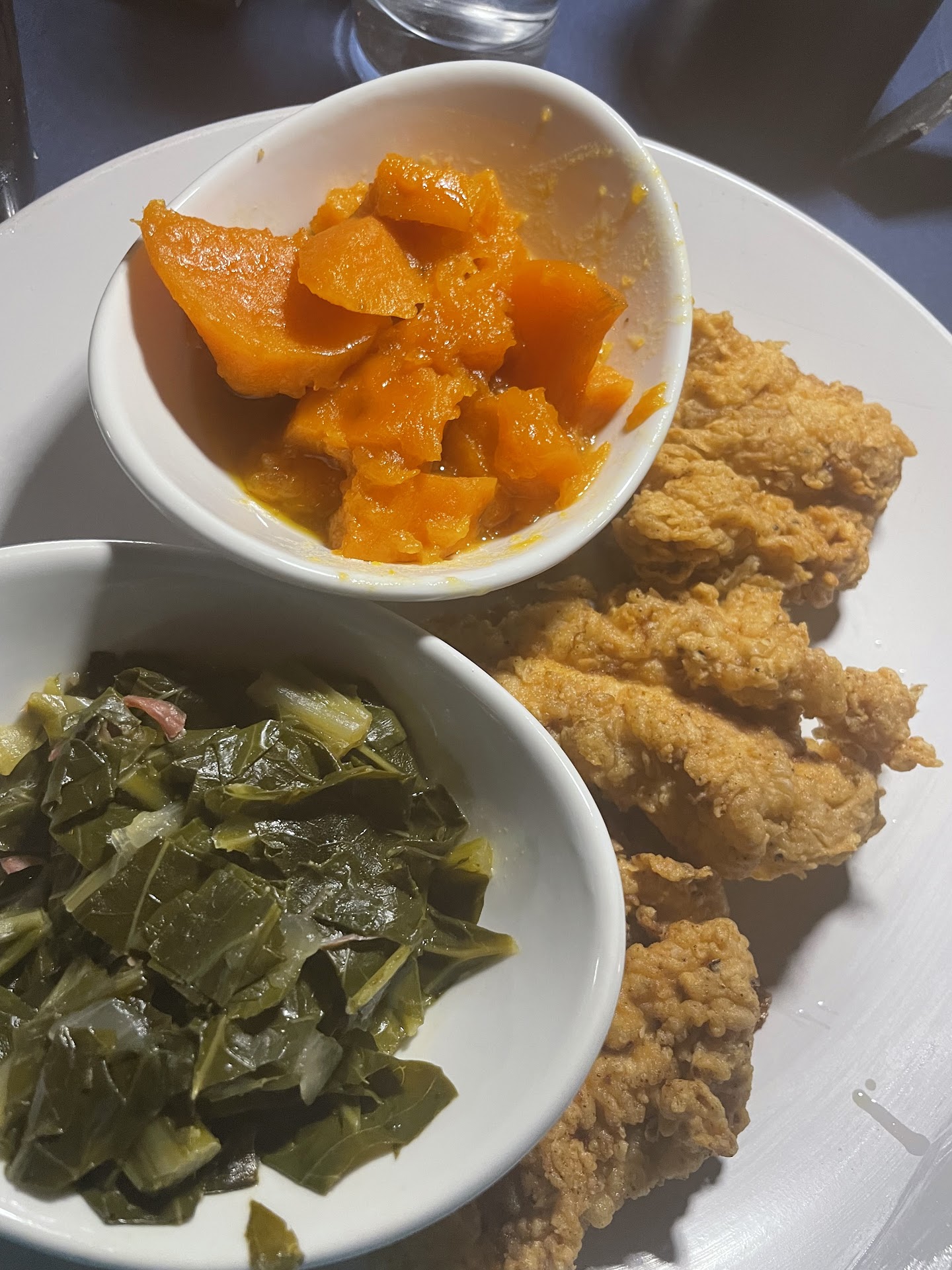 I waited 24 hours after my visit before writing my review. I went on February 4th (my birthday) for dinner with 7 other adults. This was my first visit to this restaurant but I've wanted to try it for awhile!! I ubered there and when I walked in, I was greeted to STAIRS!!! There's no host or posted signage about whether to go down or up but based on the sound of the music, I went up. 20 or so stairs later, I was in the dining area. There was an unattended coat rack and again, no host/hostess. I went in and found my co-worker. She arrived first and sat at the bar (solo) and ordered 1 drink (blackberry lemon drop). The drink was $16 and she was charged automatic gratuity. They would not seat us (although the restaurant was not busy) until our entire party arrived. Shortly after I arrived, the rest of my party arrived and we were finally seated! We were given glasses of water then the server walked away. 20 minutes later he comes back to take our drink order. We order 5 alcoholic drinks and 3 "freshly squeezed lemonades." Almost 30 minutes later, our drinks arrived... Again, the restaurant is not busy on a random Tuesday, 2 hours after opening. Maybe another half hour goes by before he returns to get our dinner order. Because there's such a long wait between him checking on us, I asked for 2 pitchers of water so that we can just serve ourselves. It took forever for him to bring 1 pitcher of water and we never got the 2nd one. I ordered the whole red snapper (2 hours after opening) and they didnt have it. My backup was the oxtails. Everyone else had chicken or catfish along with mac and cheese, yams, greens and a Cesar salad. 1.5 hours later, our dinner items crept out 2 at a time about 10 minutes apart. We've been here for hours, everyone is fresh off a long day's work and we are HUNGRY!! The food... Was terrible. And that is putting it nicely. My taste buds have never been so offended. My oxtails were extremely TENDER!! That is the highlight of my meal. It was very salty but otherwise flavorless. My coworker complained that her Cesar salad was gritty and tasted dirty. The catfish was fried beautifully but was again salty but otherwise bland. The chicken was flavorless and didnt come with the sauce it was supposed to have. The yams were like sugar and the greens were canned at best. Our plates remained full of food as we asked for boxes and the checks. We gave honest feedback that Im sure will fall on deaf ears. Some people went to Wendy's immediately after leaving and some of us went to coney island. This was a miserable experience from start to finish. I usually believe in trying things at least twice. I will not put myself through that a second time. You have been warned. We did notice people who sat at the bar were getting extremely fast service. We saw people who came HOURS after us get their food BEFORE us. Zero stars was not an option but to be fair (I guess) the oxtails were mid at best. And the place is so damn dark. Not sexy vibes dark but like who didnt pay the utility bill dark. Just.... Stay home and order Domino's. Edit... The person who said she was the manager did offer us shots so I will give credit for that. Not that it even comes close to making up for such an awful dining experience. And your automatic (20% or more)...