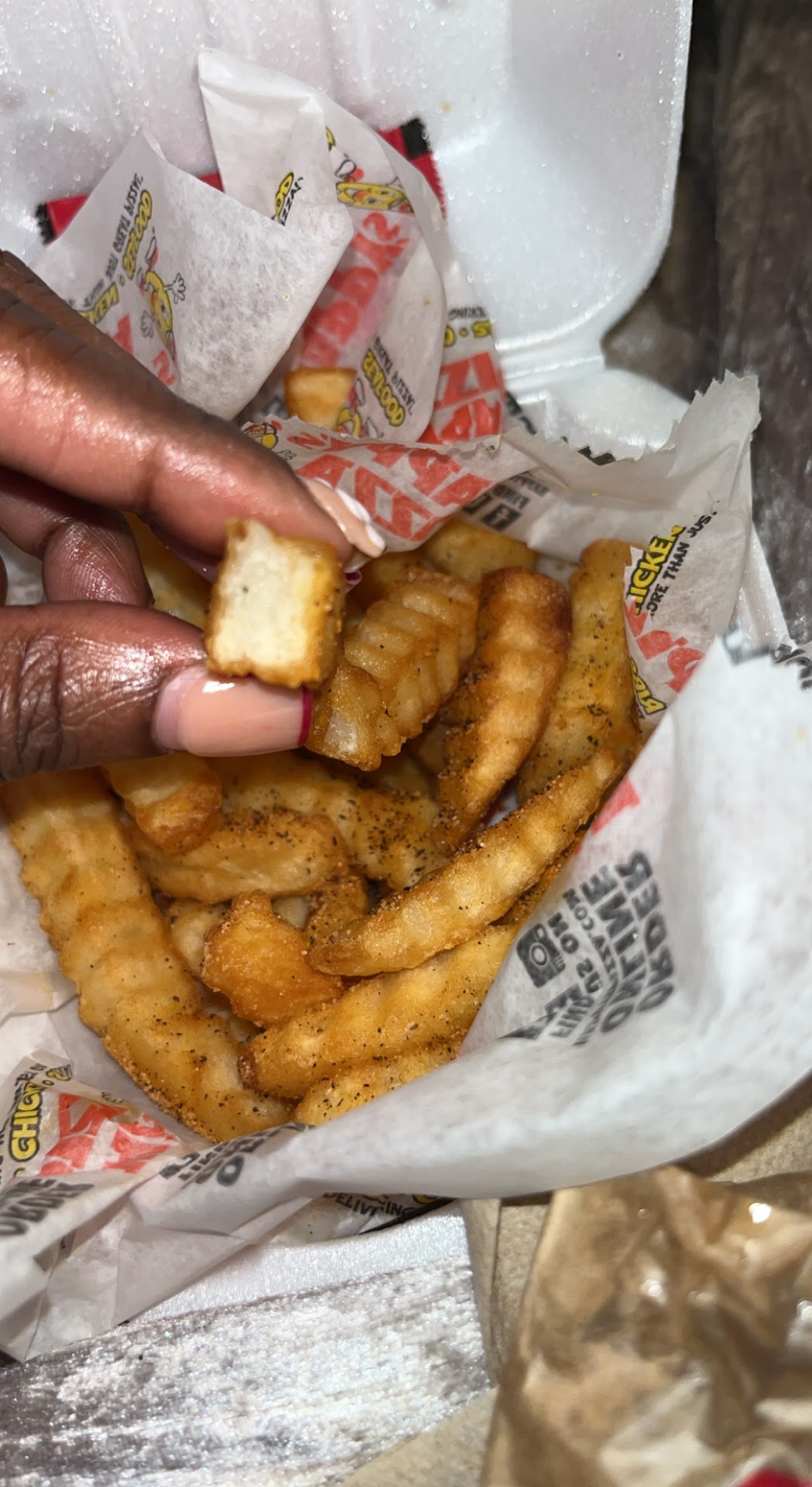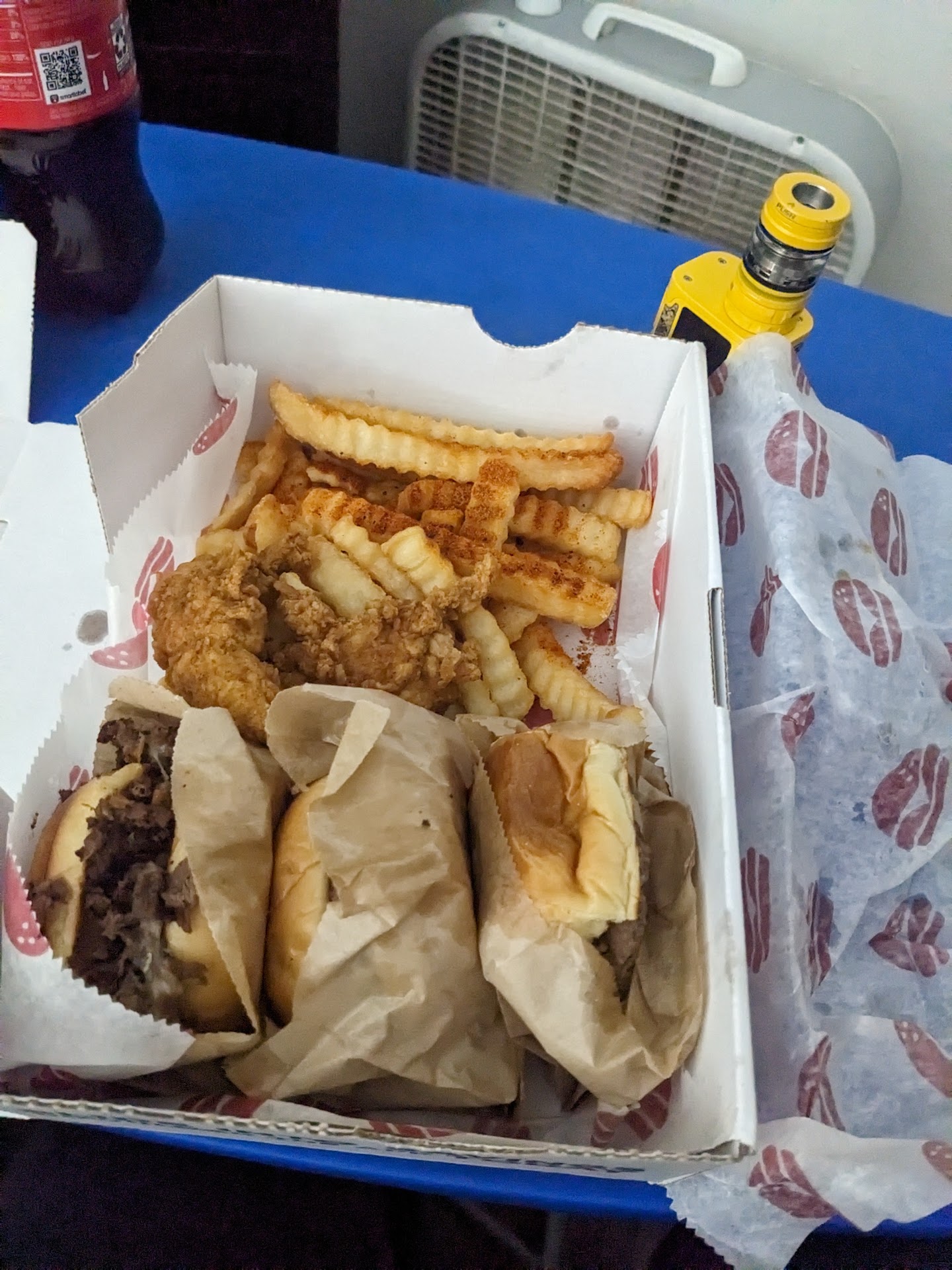 But, then it took a turn....at the window. Confirmation of order fine... Paid fine...$30...for two meal of two sliders and Cajun fries...two sodas. Pricey, but it's Detroit, so you expect to be gouged in the wallet but whatever. The window shuts and drive-thru employee left to take phone order. About 4 minutes later, we watch people (MEN) come out with food to go boxes from the kitchen, and they set them by the drive-thru window...okaaay. They disappeared into the back!