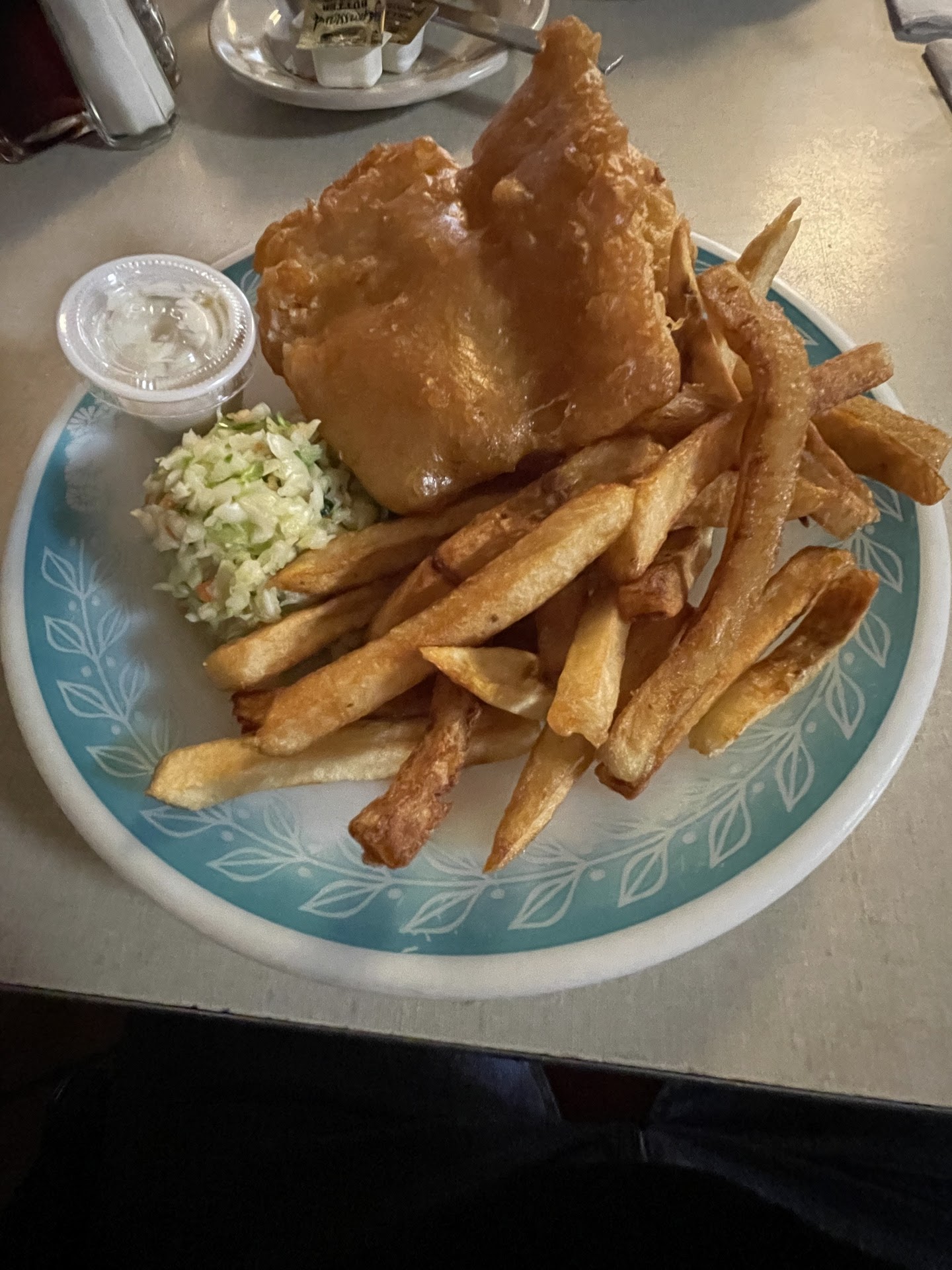Read moreVisited this establishment on a Friday for takeout and it was extremely busy. It is cramped. While waiting patrons stand very close to people who are eating in. While waiting I noticed none of the people who were cooking had masks on and they were picking up cooked food with their hands. I saw them put their bare hands on several plates and pick up food more than a couple of times with bare hands. I ordered the fish and chips. Which was $12.50 It came with three pieces of fish and a handful of fries. The roll, coleslaw and tartar sauce is optional for takeout. The fish and chips was really good and the coleslaw was fresh. The fish and chips is good but over priced. Not enough food for almost $13 Based on the way I saw the cooks handling the food I will likely not return. They should handle the food in a more sanitary way. It's obvious none of the employees went to a Food Handlers Class and it's unfortunate because the food is good. The concern for the customers health should be a priority and the food should be handled safely so that no one gets sick. Although the food was good I will not patronize this business based on the way they handle the food. Gloves and hand washing should be a priority in...