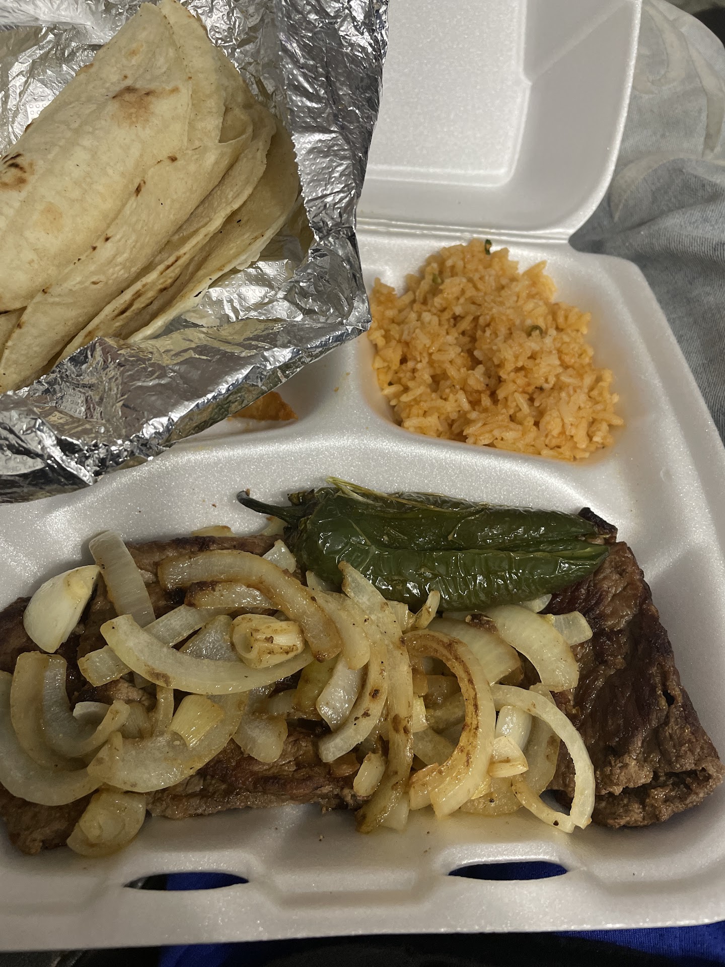 We ordered takeout- enchiladas verdes, the combination plate, chips and guac, and flan, all vegetarian. The enchiladas themselves were actually good. The burrito on the combination plate, which we asked to be filled with beans, came with chicken. The enchiladas had basically no sauce on them, and the tacos were filled with limp green beans and avocado that was brown (pictured). The rice that came with both entrees was old and dried out, clearly not made today. The guacamole appetizer was not bright green but slightly brown, also not made today. Serving old, unfresh avocado and rice only made me question the freshness of the emchiladas verdes. The flan tasted good, but again who knows how old that was.