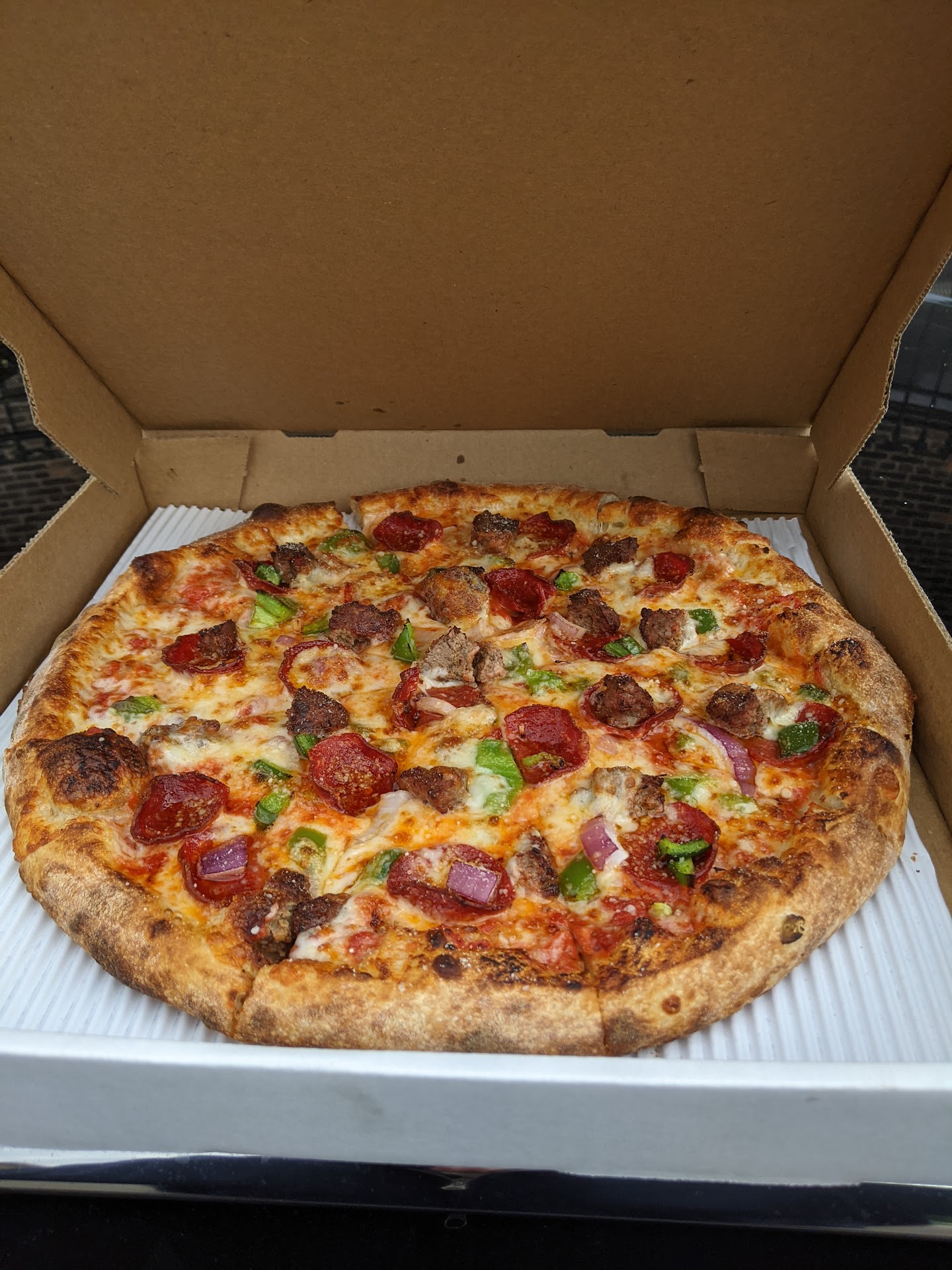 The pizza ordered on this visit was just leaving the old world oven and being boxed. Their 15-20 minute prediction was right on point. I was offered a complimentary side of their homemade ranch and was genuinely thanked for my patronage.