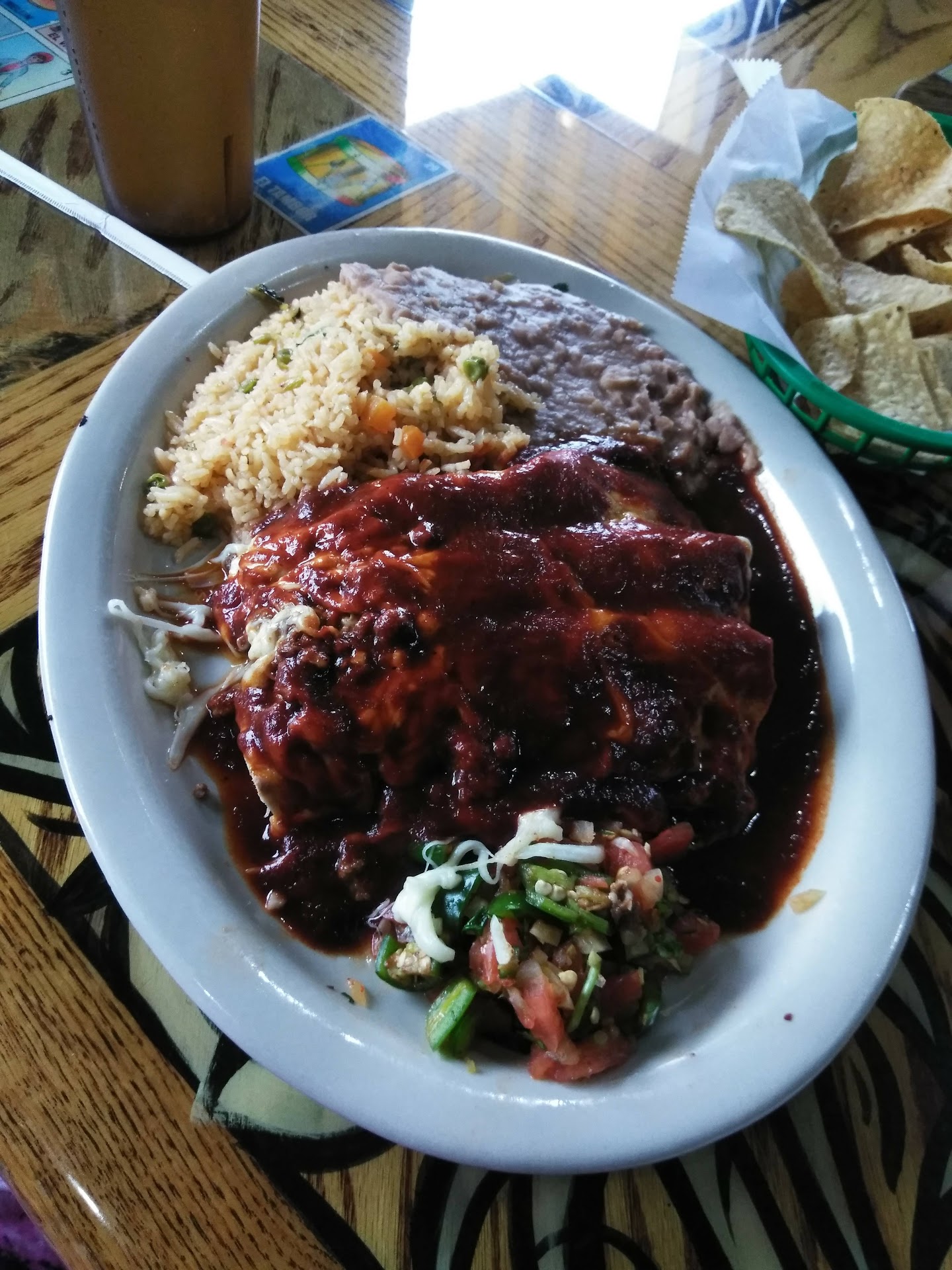 Read moreIt's my first time here so my review might not be fair. I was there at lunch hours the place was packed and loud which I'm sure is probably normal for them. I ordered the Enchiladas meal it's three Enchiladas, rice, beans I also ordered a side of grilled onions and Serrano peppers. They also bring out Chips and Salsa oh I had a Lemonade which was very very good! Firstly the enchiladas I ordered was suppose to be with Green sauce i don't usually care for the red sauce however when my plate came it had red sauce on it and normally I would have it sent back to get my correct order but my soul told me I'm safer just eating what I had. My first bite my food was just luke warm almost cold and further in it was just warm. I asked for chees but I guess they forgot that too. The enchiladas was good It just didn't come the way I ordered it and the rice and beans were just ok. The chips I'm pretty sure they are not made in house the salsa is pretty good tho. Someone mentioned it being hard to find but I didn't think it was hard to find I was in a Uber he found it just fine. I think this place is definitely worth trying out I'm sure I may try it again in the future.. Let me mention this is a kid friendly place and the place is clean the service was exceptionally fast for it being lunch time. The workers are friendly and attentive and I felt comfortable honestly that's enough to make me for sure give this place another try. Oh and I had a good amount of food to bring home so the...