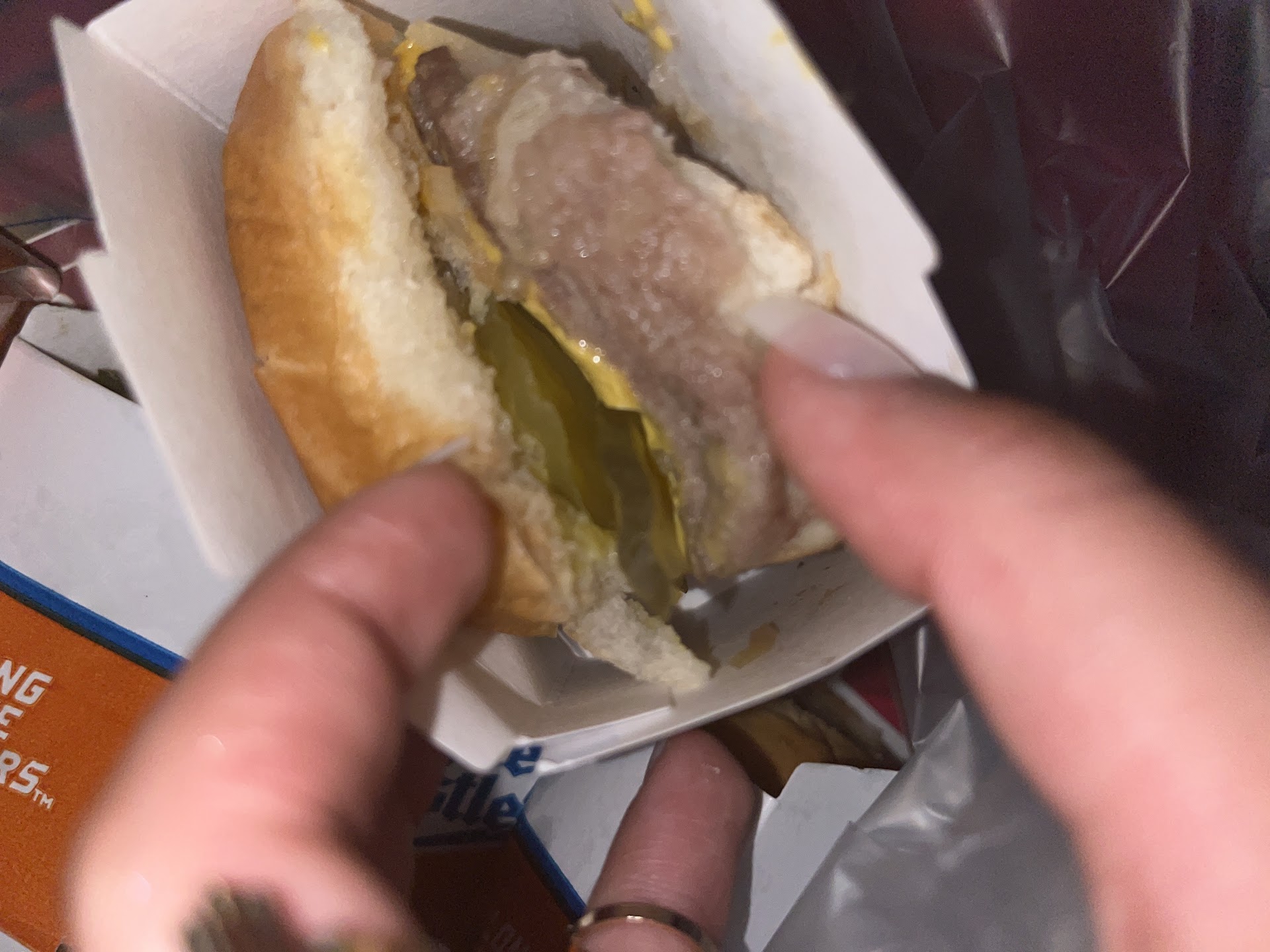 Can't speak upon the food or the quality of it, but I can't imagine that your White Castle will be that great delivered after sitting in the restaurant for 30+ minutes for the wait in the drive-thru line and then sits in the car for the 10-15+ minute drive to drop it off. (I wouldn't ever even give this location my money for my own order with how poor the service is.)