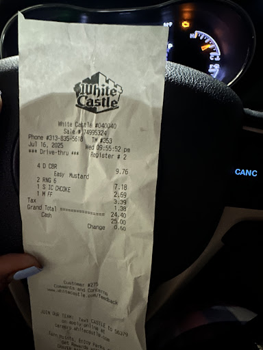 I was suffering from the "Crave" so I Googled a White Castle đ° to satiate my hunger and headed to this location. It's definitely a busy spot as I noticed when I arrived. The Drive Thru lane was lined up all the way around the building đ« so I went inside to order. There were 3 others ahead of me in line but I still had my order placed in less than 5 minutes. At that point I had to wait almost 15 to get my order, which happens often at any White Castle due to the small grill sizes they have and the large volume of burgers in (almost) every order. But they were very polite and the location was clean. Soon I was back at home đ enjoying my delicious treats. Well...