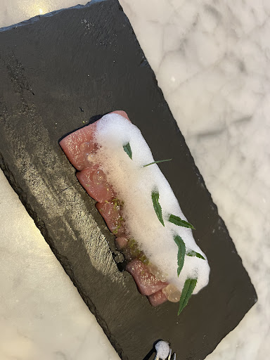 The atmosphere of the restaurant itself is really nice. Especially if you're looking for a more quiet date night. The entrance is kind of unique as well since you enter the building and immediately get on an elevator to the second floor where the restaurant is located. The dining room itself feels inviting and modern and it's not loud, so you can actually have conversations without yelling at each other.