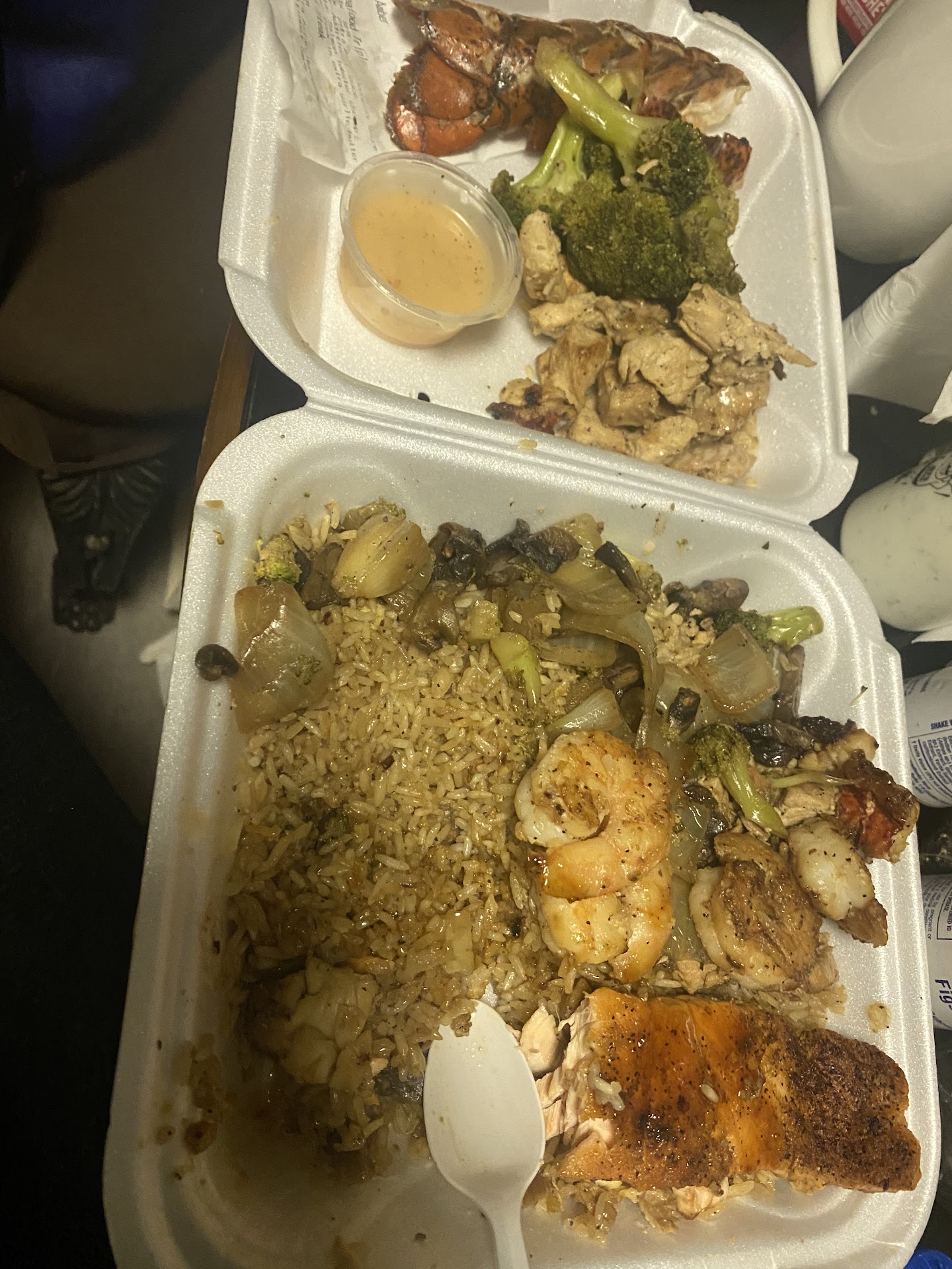 Man ok let me paint the picture. I have been craving Hibachi for the longest so I said to myselfā¦.self letās try this spot in Southwest. I wanted the Hibachi double with chicken and shrimp and shrimp fried rice. Then she said to have shrimp fried rice it was an additional $8 so I said pass on that give me chicken fried rice which was $4 extra. I go pick up my order and the young lady says sorry we donāt have any forks. Mind you I paid close to $40 for the meal and I couldnāt even get a fork. I was at work on break how am I supposed to eat then. Smh.