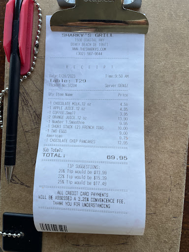 Awesome little outdoor local spot that you could window order and sit where ever. Now they have turned it into a sit down and order with a waiter traditional restaurant type set up and we weren’t a fan. Adds some cost and just kind of takes away from why we have grown to love this place in the past. Lots of sit down to eat breakfast places we will probably go check out in dewey instead of sharky’s now.