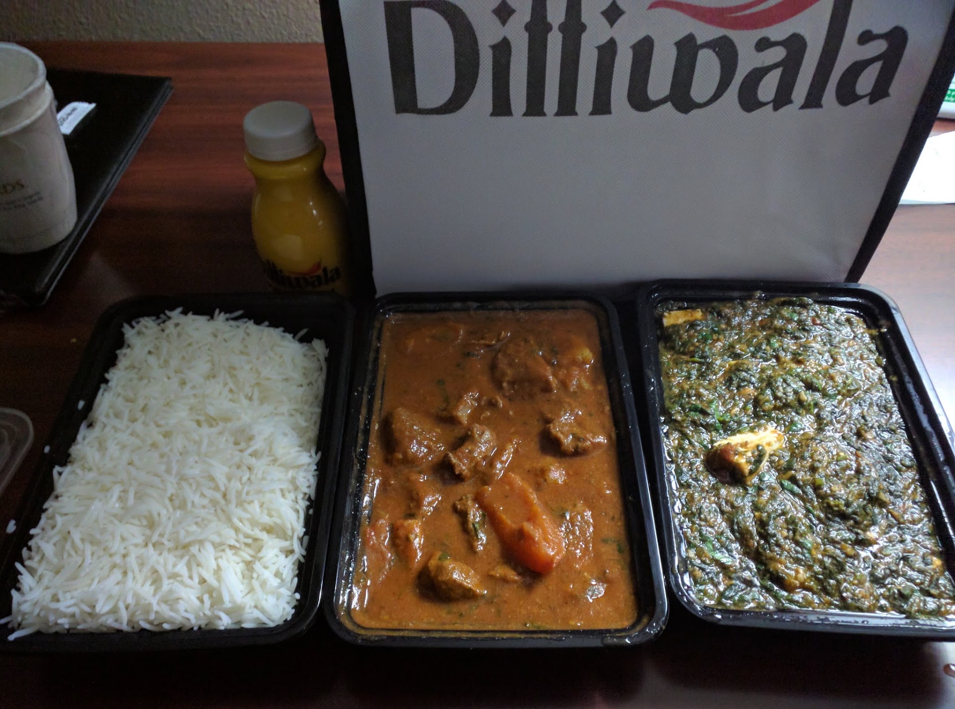 The other big miss was the spice level of the vindaloo. It tasted so mild to even be bland. I have a high spice tolerance, so it could be me, but I had to check the ticket to make sure it said "spicy" which it did. The palak panner and basmati rice were both pretty nice and the portion size was good too.
