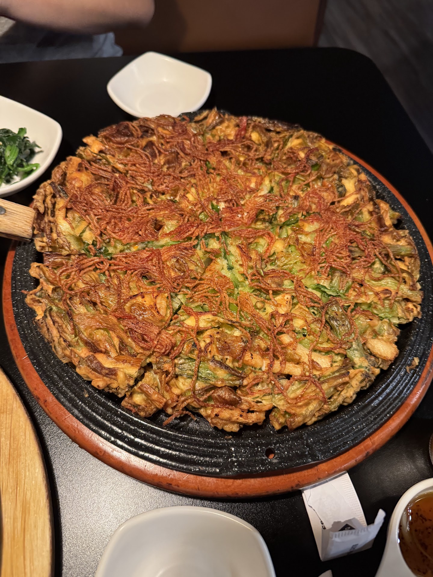 The seafood pancake is absolutely totally completely amazing. It has a lot of vegetables but they cooked them to be so soft and the flavor was inside every string of spring onions. Bulgogi was delicious and has a lot of veggies. Kimchi was homemade! You can see and feel the taste difference. They have hand-pulled noodles too.