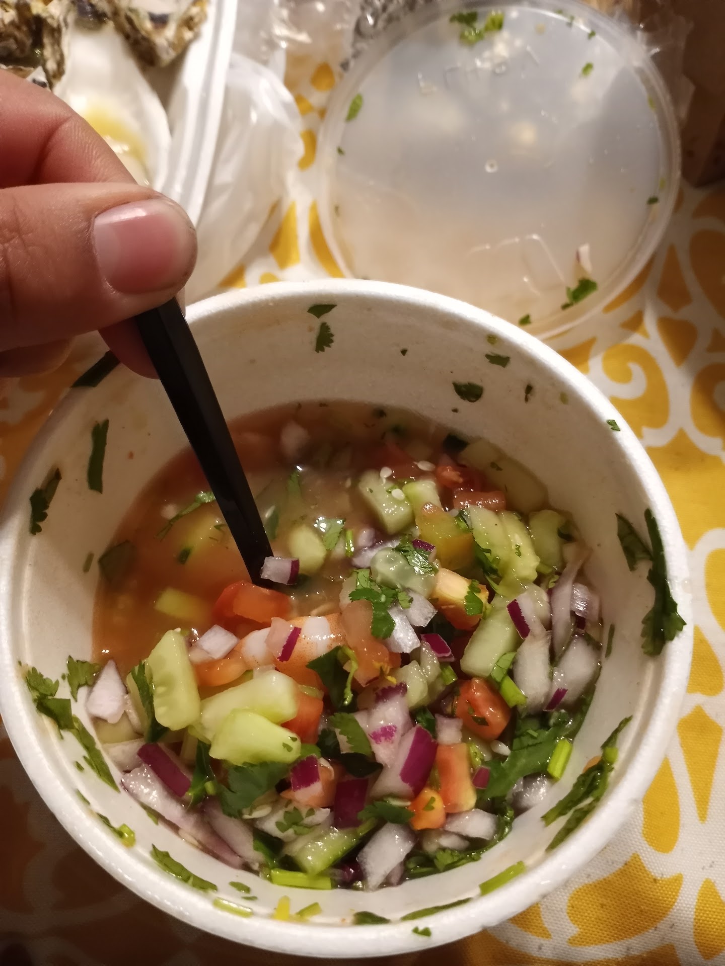 We got 2 shrimp cocktails. Great amount of shrimp and decent sauce, but its missing tomato sauce and onions are too big. But definitely worth it