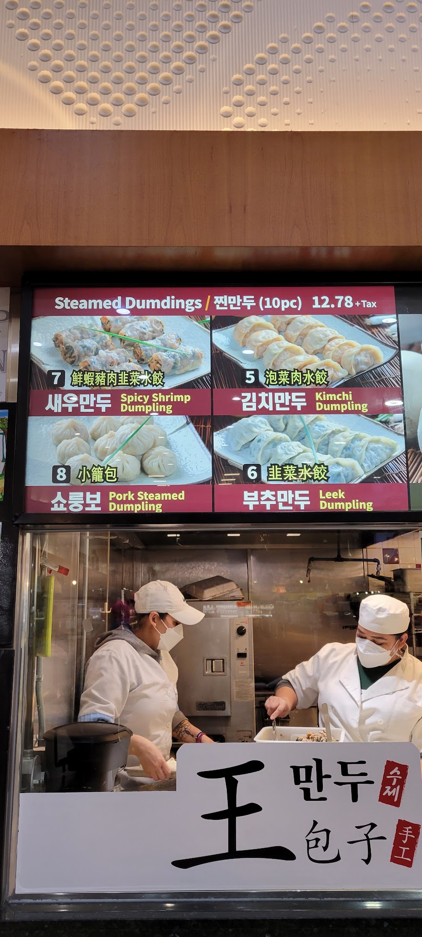 Ā Ā Ā Read moreThis place is inside the H-Mart Market and specializes in mandu (Korean dumplings). The mandu have too much japchae (glass noodles) for my taste but their friend chicken is surprisingly good. I think they use a cornstarch based coating; it's very crisp and not greasy but it doesn't reheat well. I wish they had sides like fries but unfortunately they don't. The chicken is fried to order so expect to wait 15min. On the plus side, you can do some shopping in the market or look at other drink/snack options from the surrounding stalls.