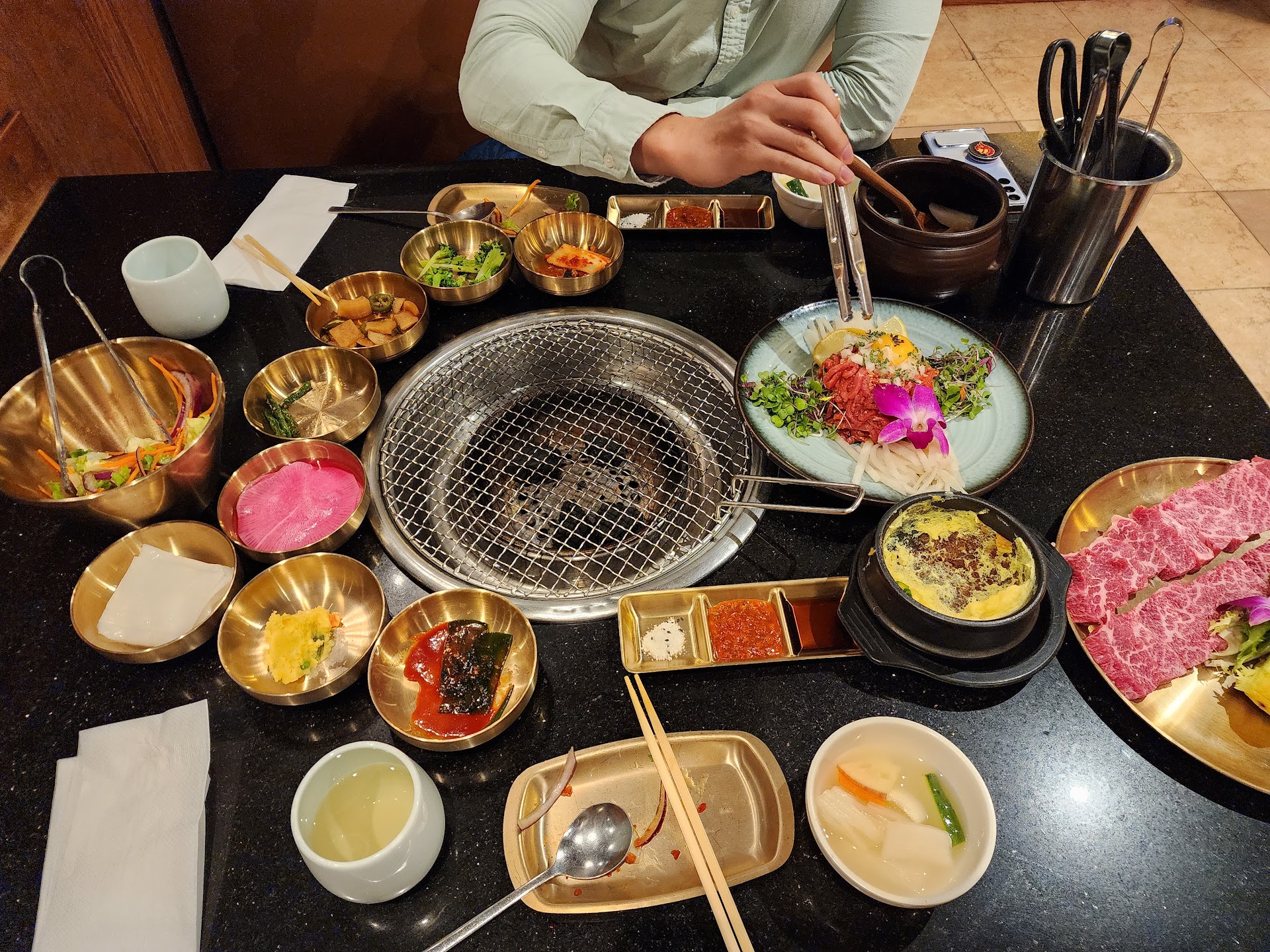 This is a recent open dining spot with fancy decors and atmosphere. We ordered yukhoe (beef tartare) and ggot sol. The beef tartare tastes well seasoned with fresh pears on the side. The ggot sol has perfect marbling and the table service helped to have the beef cooked perfectly with our preference. Along with the entrees, the side dishes are also delicious. There are various types of side dishes including marinated dishes, steam egg, soup upon request, and salads. Overall, the service was nice and food were wonderful. This has become one of my go-to...