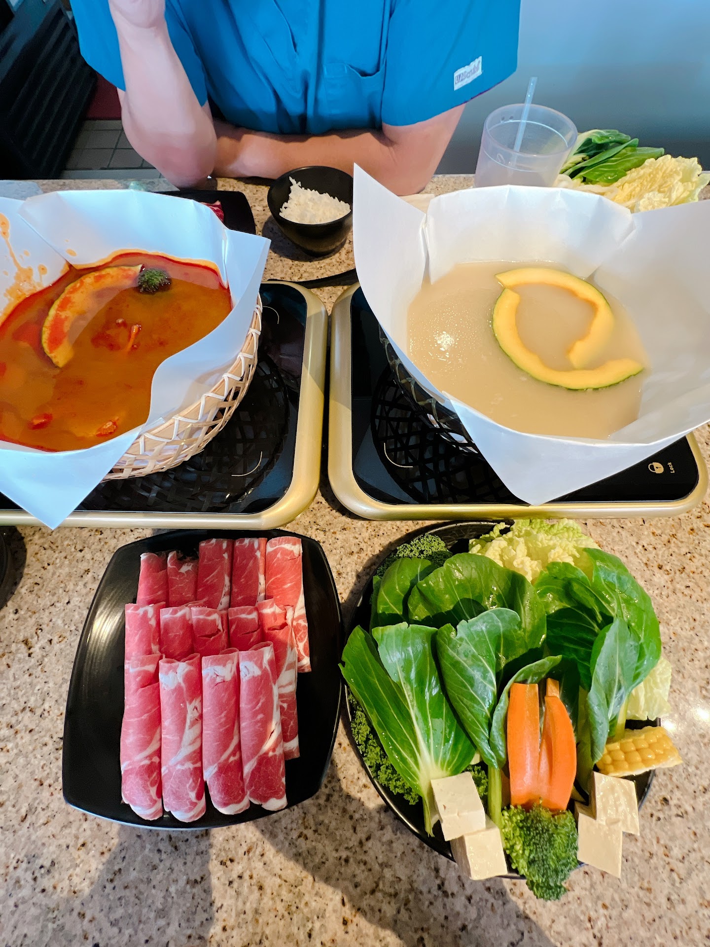 There were 4 hot pot heating units on the table already. The gentleman who seated us returned with another hot pot heating unit. Proceeds to plug it in right in front of my 7 year old. I inform him that he’s not having hot pot. He continues to plug the unit in. We then end up rearranging the units to accommodate those eating hot pot. Self service to the Nth degree.