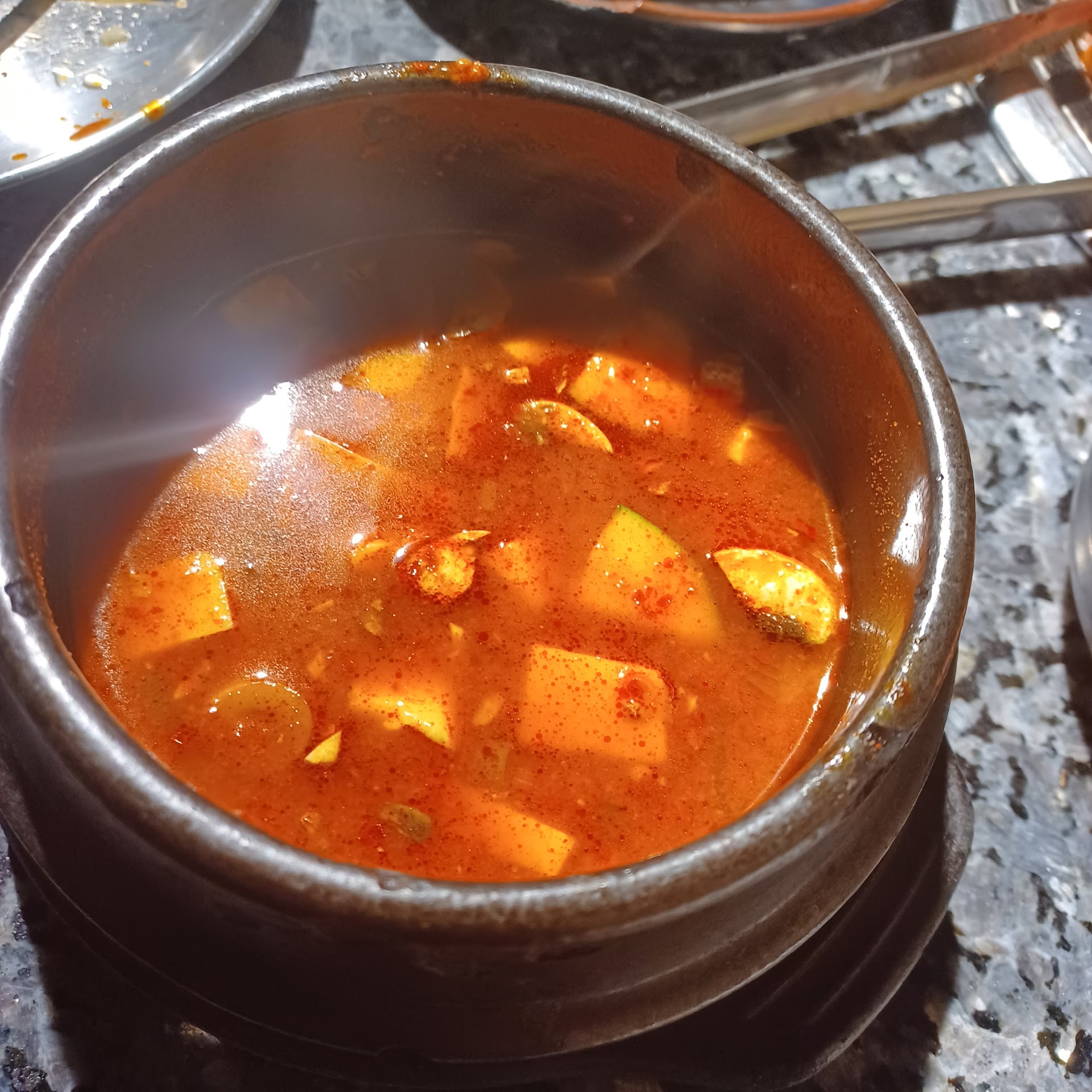 Kimchi doshirak was also new to try. The waiter had egg, kimchi, rice and some sauce in a metal bento box, and he shook the box to mix the ingredients before serving. It tasted like kimchi stirred rice. Pretty good as a side.