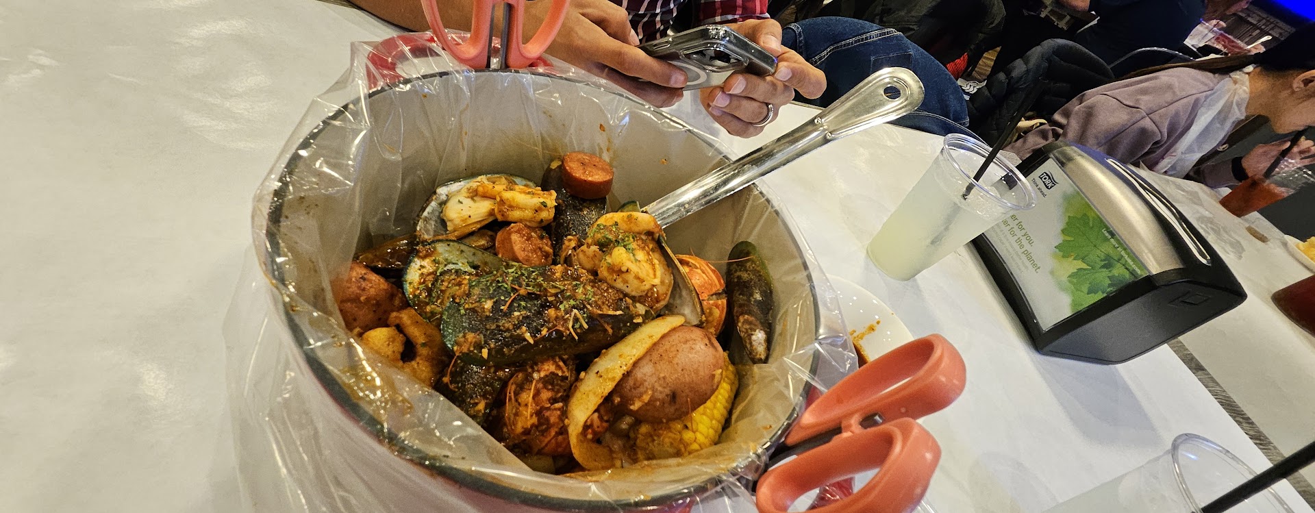 Read moreFood was ok at best. I ordered the combo 3 that came with 1.5 lbs of snow crab, 4 sausages , clams, crayfish, potatoes and corn. Took them forever to bring my dish and when it came it was warm not hot they forgot the main thing the SNOWCRAB! When i told them they forgot the crab they took the whole dish back came back 15 minutes later with the crab then I noticed they forgot the sausage I told the waitress she came back with 1/2 a sausage cut into 4 little pieces AND IT WAS COLD! To top it off after everything the cook was behind the counter giving me dirty looks. The waitress was nice and all and very apologetic about the food but I'm never going back there again unless the cook wants to fight then I'll go back amd kick his ass he probably spit in my food for all I know that costed me...