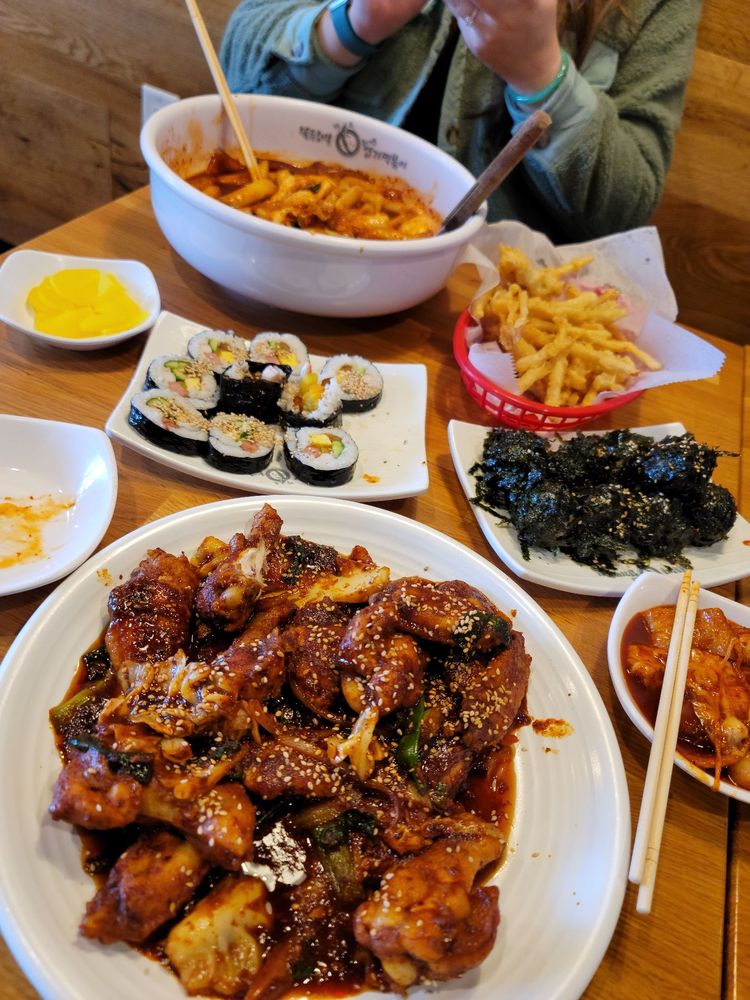 I had the C set along with spicy chicken and Kimbap. Everything came out very hot and fresh. I like that it really seemed like it was all made in-house. The seaweed rice balls come with a lot of seaweed which works well. I've been to other places where you actually make the rice balls yourself, but these come out made already. The Veggie fries I think were mainly sweet potato which is my favorite part of veggie tempura. Tastes good with the tteokbokki sauce.
