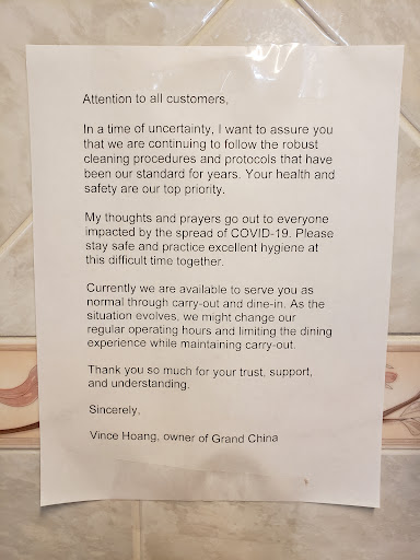Read moreMy family and I absolutely love this Chinese food and only order from here. We have been doing take out for the last year due to Covid-19 and we can order ahead with a pick up time and the food is always hot and fresh. They never make it way too early which is amazing because I have a 40 minute drive home from there. The owner is extremely friendly and welcoming along with all of their staff. When we were able to eat inside before covid ( a family member is very high risk) the staff was amazing and the restaurant is very clean. We are from the east coast and noticed many other Chinese restaurants in the area lack flavor when it comes to their pork fried rice but not at Grand China! Grand China's pork friend is absolutely amazing and reminds me of home back in Philadelphia. They also have no problem accommodating special orders such as no veggies in the pork fried rice (my mom prefers it that way) and regular pork fried rice with no egg since I am intolerant to scramble eggs. As a family we try our best to support local businesses especially restaurants during Covid-19 and they will always have...