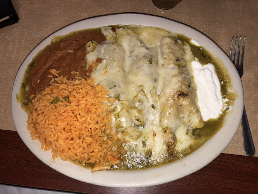 I can still taste this picture. The #6 green chicken enchiladas (with fajita chicken) was a sensory treat for my tongue. The fajita chicken was cooked perfectly and sliced thin and long, just enough for me to double it over and dip it into the green sauce. The green Chile sauce tasted fresh, and for some reason the sour cream tastes incredible when served with any dish in this restaurant. Mixing the rice into the overflow sauce was deeeee-licious! (The fork is for scale- this plate is HUGE.)