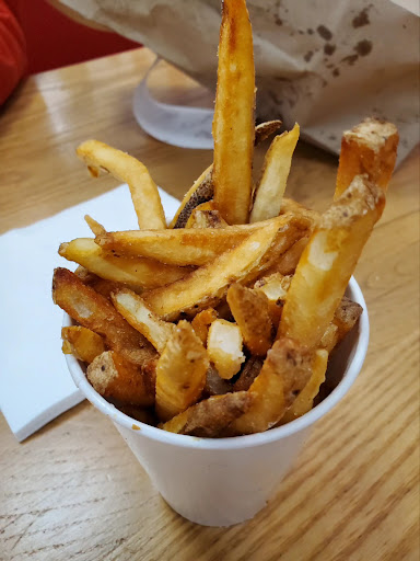 The moment you step inside, the scent of sizzling beef wraps around you like a sinister embrace. The fries—golden, glistening, whispering promises of indulgence—spill recklessly from their container, an avalanche of temptation.