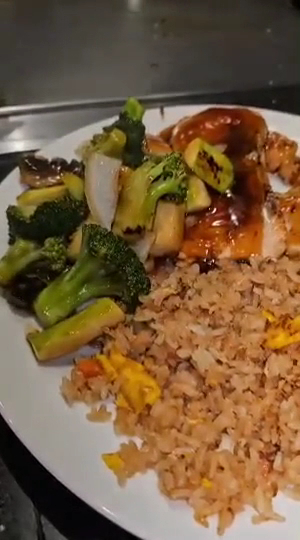 Salad with ginger dressing was salad with ginger dressing. Fried rice and vegetables were standard. Nothing special to commend, or to complain about.