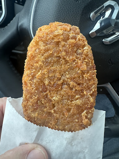 There is no golden with this hash brown. 15 minute wait to place my order. I come by every Thursday morning to pick up breakfast for my customer. I order the same thing every time I do not expect them to remember me or know what I ordered or remember hey this is that guy. Asked for the same thing every time. When the total came up, I realize it was a lot cheaper so I said hey, did you get, the three sausage egg Mc griddles. No answer so I pulled onto and waited. Got to the window and asked the person. Hey did you get my three sausage egg? Mc griddles with guy is always nice and he looked at me like I was crazy. He said they’re on there. I said OK just checking just wondering why it was so cheap this time . No reply gave me my change when I pulled up to the window. The over rushed person at the window handed me my stuff and I was on my way. I know they’re busy. They’re probably understaffed that is fault of management and if management is reading this, you’re terrible at management . There was no egg on my Mc griddle. And my receipt showed buy one get one for one dollar . So that’s where the less expensive receipt came from. Plus, there was no egg on my sausage egg and cheese Mc griddle. No egg on three of them. The hash brown was horrible. The picture makes it a lot brighter than it looks because it was dark and overcooked and hard as a rock just like the biscuit on my sausage biscuit with egg that they put cheese on that I didn’t ask for. And by the way, like a lot of people think, the two lane drive-through might make things easier and faster for McDonald’s, but it makes most of us mad because most of us don’t know how to take turns. We are already in a rush to get where we’re going so we stopped for fast food and when the fast food is not fast and there’s congestion because of the dual Drive-through, it just adds to the turmoil of the day. Sorry if I This rubs anyone the wrong way I got rubbed the wrong way...