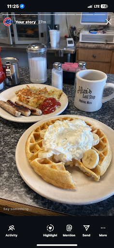 First things first, I was recommended this place from co-workers as the place to get good food for a good price. So far I have gone twice with other co-workers and let me say they were RIGHT! This place is a classic and loved by the area, though it isn't in the most diverse area, they met me and my colleagues with gratitude and respect. There is a small wait in the a.m, but worth it. Both times I enjoyed an omelet with kielbasa, sausage, bacon( sells itself), and cheese (Mozz/American). Their homemade bread is amazing I had cinnamon raisin and their sweet bread. The home fries are a must, not a big potatoes guy, but I could not say no, they do them right. The waffles and pancakes make Denny's seem like underachievers. The variety of food makes you want to try it all. The portions are filling so you can satisfy the fat person inside or save some for later for another round of flavor. The service is polite, welcoming, and knows to keep the cups full while food is still on the plate, and they do not rush you to finish and go. My taste buds have enjoyed the experience, and by all means it won't be my last stop to Alice's, but will be for a few other places. Thank you and keep up...
