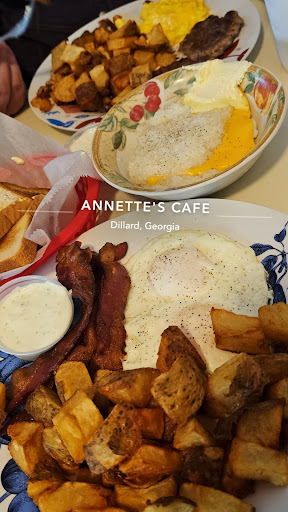 Cheesy grits. Add salt & pepper, stir, eat, and then walk around with a smile on your face for the rest of the day. 😊 Taters! Real, cooked perfectly. So many places just don't get taters right but Annette's definitely does.