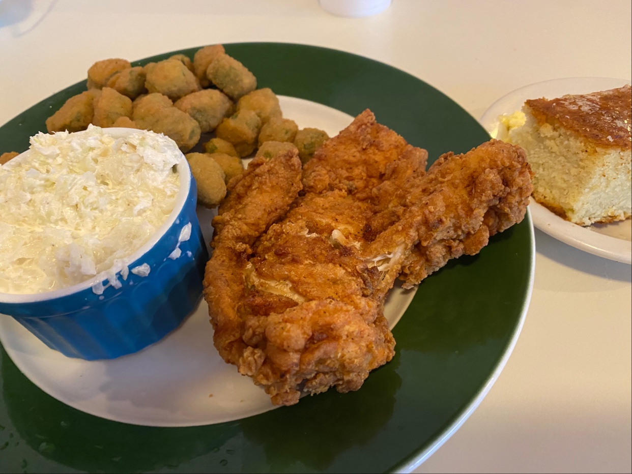 2nd Food: I ordered fried chicken breast with fried okra with truly home made coleslaw with coconut cake. Boy o boy it was delicious chicken was tender soft juicy flavorful, coleslaw blow my mind, it was salty with touch of sweet flavor never had such a delicious coleslaw before. Okra were fried to perfection.