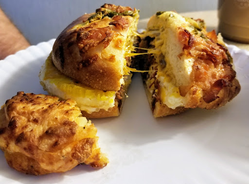 Purchased Texas brisket egg sandwich and Bagelrito with hash browns orange juice and nitro caramel cold coffee. Total came to $29.76, a bit pricey for breakfast but was willing to splurge since it was my birthday. The Texas brisket egg sandwich was a work of art and had a well balanced flavor. The bagel itself was crispy on the outside yielding and not chewy on the inside, just right. The Bagelrito is an innovative attempt but falls short of perfection. The outer "bagel" shell is a cool idea, however it's a bit too thick and chewy. Dropping the flour tortilla would make it crispy without being chewy. Ingredients on the inside were a very tasty blend with a nice kick. Didn't care for the hash browns. I was expecting a light salting on the outside, crispiness and potato flavor. Was not crispy, lacked salt and the cheese used wasn't complimentary and drowned out the natural potato flavor. Orange juice tasted amazing, perhaps freshly squeezed. Nitro caramel cold coffee was good but too sweet. I guess I'm not the target audience for that drink. Overall, I respect the effort in craft and the desire to make something different than traditional breakfast. Some of their offerings need a bit of fine tuning. Leave the orange juice and the Texas brisket bagel...