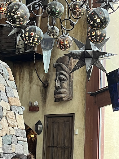 What makes this place stand out a bit is the welded metal folk-art everywhere, from floor to ceiling. It'll make you stare for a bit and say "hm. interesting." The large windows give you a very nice view of the mountains and trees.