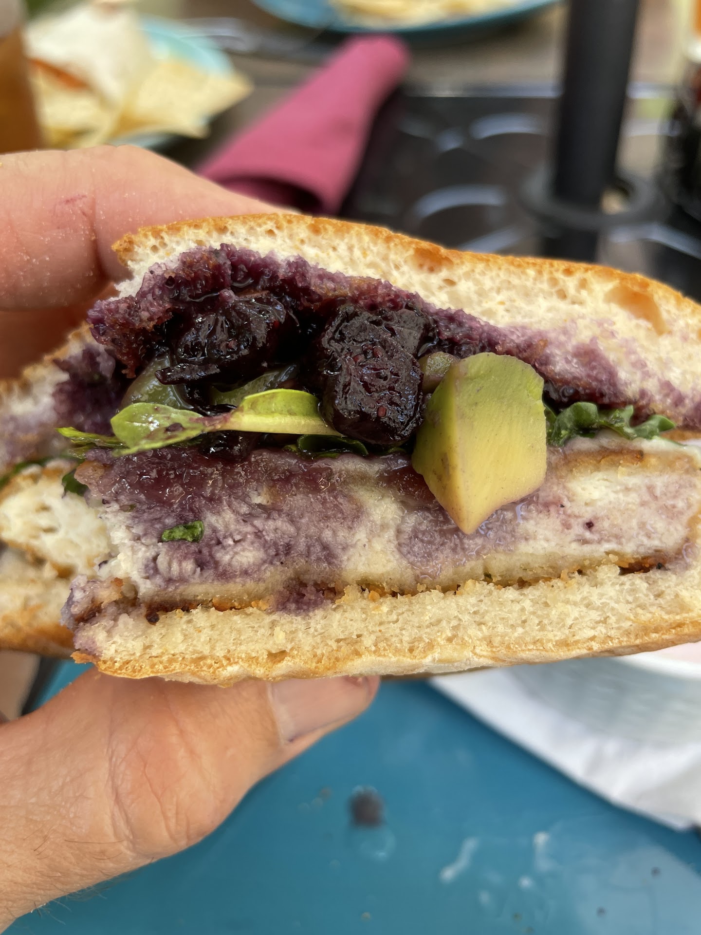 Two of us got the "award winning" Sandwich - (this is from the menu) Winner! Winner! Chicken Dinner Our "Award Winning" Sylva Art & Design Competition Chicken Sandwich- Breaded Chicken, Munster Cheese, Fresh Avocado, Arugula, House-made Blueberry Compote on a toasted Ciabatta bun. $13.00
