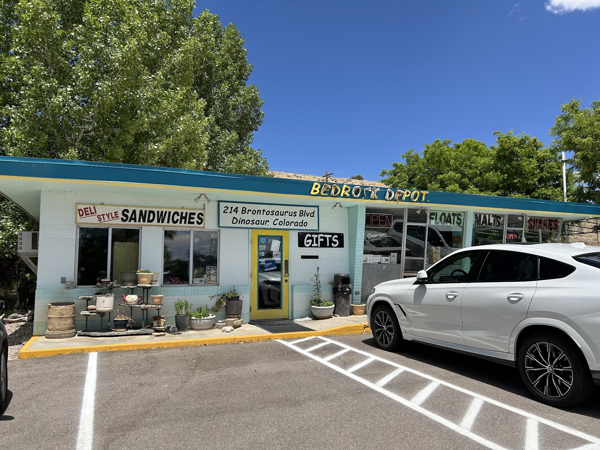 Small shop in Dinosaur CO serves sandwiches, coffee, name and off name soda and a huge selection of kitschy items. The name soda is reserved for the combo menu items. The off name soda we had not heard of, but may be local, so they may be just your thing.