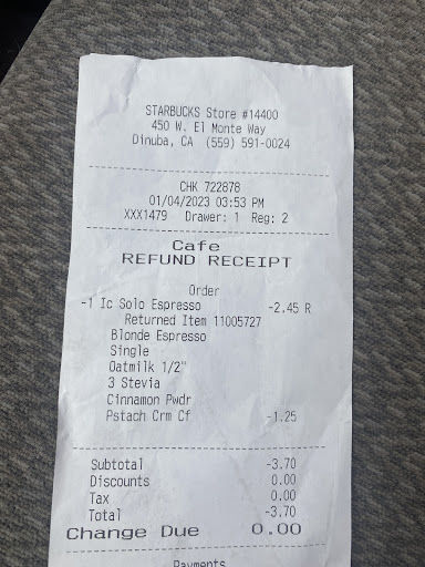 Read moreVenti chocolate iced coffee with almond milk with three shots of expresso with no ice big time rip off no not only cause itâs low but mainly cause they didnât put my pimple of vanilla and the chocolate powder they shake in there I had this drink yesterday Same place this just not what I had yesterday and it was not this height it was lower with ice today!!! After I said no ice I ordered online so I know what I put and can go back at look at what I ordered I told her I asked for no ice she took it and removed the ice I thanked her and left I wasnât about to complain about the other stuff just cause Iâm not that type of person to be complaining I deal with that kinda stuff at work so I know what itâs like but if my drink is going to be that low I expect it to be with no ice and the other ingredients I paid please and thank you will still be going back but I hope they give me what I paid for next time maybe she didnât know what to put cause there wasnât a sticker label they...