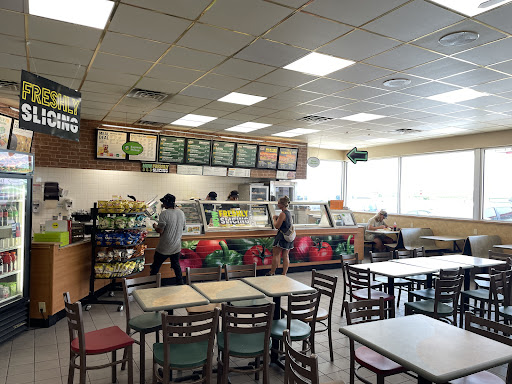 Only stopped here as we were passing through town; will definitely find another Subway next time. From the filth of the location (booths/tables covered with food, floors, soda machine, etc.), to the flies all around the register, to the girl that walked behind the counter with her 2 little kids & put her diaper bag on the counter, took a soda & chips for her kids and left, to the very unfriendly workers. A truck driver came in behind us and what he wanted was “still frozen”. 5 more people came in after us and 1 left because their wasn’t enough help. We stopped around 3:30pm and would like to see what the lunch or dinner rush looks like with 2 very...