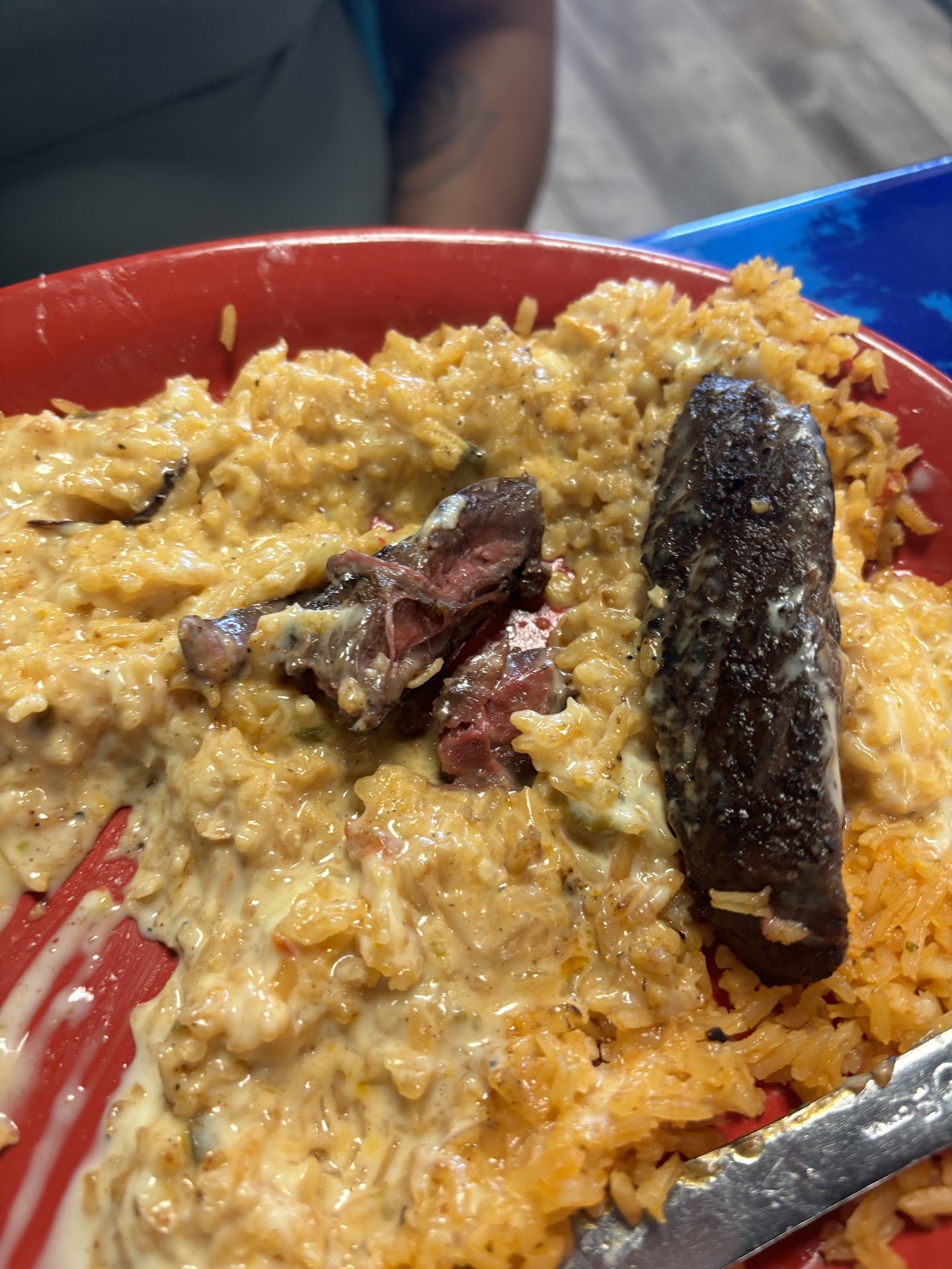 My wife and I shared #77 I believe. It was a grilled chicken breast with cheese, mushrooms, & onions served with refried beans and rice. The grilled chicken was very tasty but the surprise was the awesome refried beans. The rice was above average too.