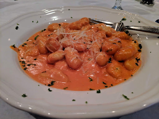 Lovely little place worth a stop. We had a less than optimal experience but they are probably capable of 5 star work with some kitchen help and better wait staff training. Thrilled we ordered the appetizer calamari served with marinara- the squid was perfectly cooked (tender with a light, crispy jacket that stayed on each piece, and didn't wilt during the 15 minutes it took we two to polish off that giant app that would easily serve four). We were offered soup, choice of Minestrone (which had a pleasant flavor and was unexpectedly a consommé-like consistency, with beans, a few peas and a few potato chunks, no pasta), which my husband liked (clearly it was freshly made from scratch but the flavor was very similar to Campbell's Minestrone) , or the pale clam chowder. The clam chowder was sophisticated, and bright with fresh chives. But for the perfectly tender whole clams, this was an emulsified creamy soup, not a chunky stew and it was a delightful, and I recommend it highly if you enjoy cream soups. The bread wasn't noteworthy- try Verruchi's Ristorante in Spring Valley, and get family style fried chicken while you're at it. The entrees somehow went awry. We waited 45 minutes after our soup, then my husband got his ribeye with mushrooms, which was perfectly cooked medium, as requested, and my entree of seafood pasta special (scallops, calamari, shrimp, mussels, crab legs with a garlic butter sauce, substituted angel hair instead of linguini), was inedible rubber. Even the pasta was blown out after sucking up all the sauce. This delicate seafood dish clearly had done 30 plus minutes penance under a heat lamp. Such a shame. I flagged the waiter who hadn't checked on us after 5 minutes of entree placement, and told him "This is rubber." He replied, "Which thing?" I said, "All of it," and demonstrated whacking a hard as tire rubber scallop with a spoon and the young waiter finally asked me if I wanted to take the dish home with me, and order something else. I did not want the rubber seafood, which was also inexplicably served crab leg on the half shell, such that there were shell chunks in the dish (and a broken bit of clam shell was in my first and only bite, clinging to the rubber calamari I had to fight to swallow). Poor presentation even if the dish had not been vulcanized, but any chef or waiter should have known not to bring that dish to table in that state. I told the waiter I did not intend to wait 45 minutes for a new dish to be prepared, and the waiter explained that these dishes only took a few minutes to make. I said if that was the case, why did it take 45 minutes to serve our entrees, and the waiter stated that these other tables (waving toward 2 to 3 four tops) needed their entrees first and the kitchen got backed up. The restaurant was half full, and I did note a four top seated 15 minutes after us was given entrees before us, so I think perhaps this was a case where the kitchen was behind, and my husband's steak maybe got dropped or burned, so they made a fresh one, and left mine to roast under a hot lamp - having worked in kitchens and food service, I know it happens at the best of places and I still think this is a nice place to go, but not if you're in a hurry (which we weren't but still, the wait was too long). The kitchen area needs sorting. In any case, I ordered a replacement dish I knew could be ready in a flash, the plain marinara over penne, to go (blah!), my husband took his to go, feeling guilty about eating in front of me despite my urging. We sat at 7:50 and it was now 10 minutes to 10 pm so why wait? We also ordered dessert to go, as we read how lovely they were, tiramisu for my him, and creme brûlée for me (I'm allergic to chocolate). The tiramisu appeared and I was convinced it was a mistake- so pale and unchocolately in appearance- my husband took a taste and said it was tiramisu and it was "okay". He loves tiramisu from Volare, and before they discontinued serving it, Barnelli's. My creme brûlée wasn't gelled properly- this is done in advance so no...