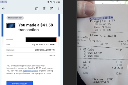 Also, the receipt and charge differed by 60 cents. I can only imagine that's due to a "convenience fee" or something due to paying with a credit card, but there's no notification of a surcharge.