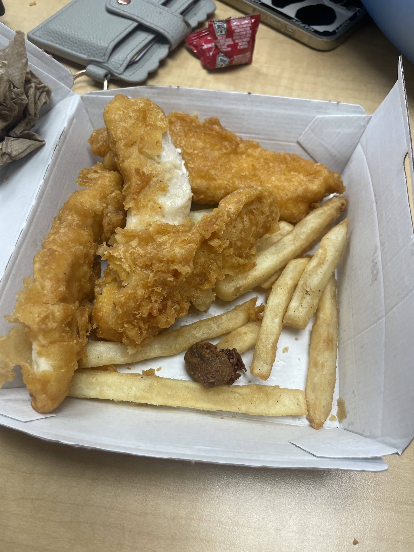 Read moreNot a very good rating for this restaurant 😕 I ordered 2 meals- the 2-fish and the 3 chicken meal. I asked the young man to add an Xtra fish and make it a 3 fish meal. First, I was given the wrong order then when given the one that I did order, I proceeded to check it and noticed that the Xtra fish wasn't in the bag. The young man then stated in a not so nice way that I Had Not ordered an Xtra one. I told him that I had and maybe he hadn't heard me and he started to argue with me. I then told him nicely that it wasn't a big deal and that I did want it. He acted mad ..ughhh! There wasn't any tartar sauce nor ketchup in the bag, which I had also asked for. Also 1 of the chicken pieces was very small. I was very disappointed with this...
